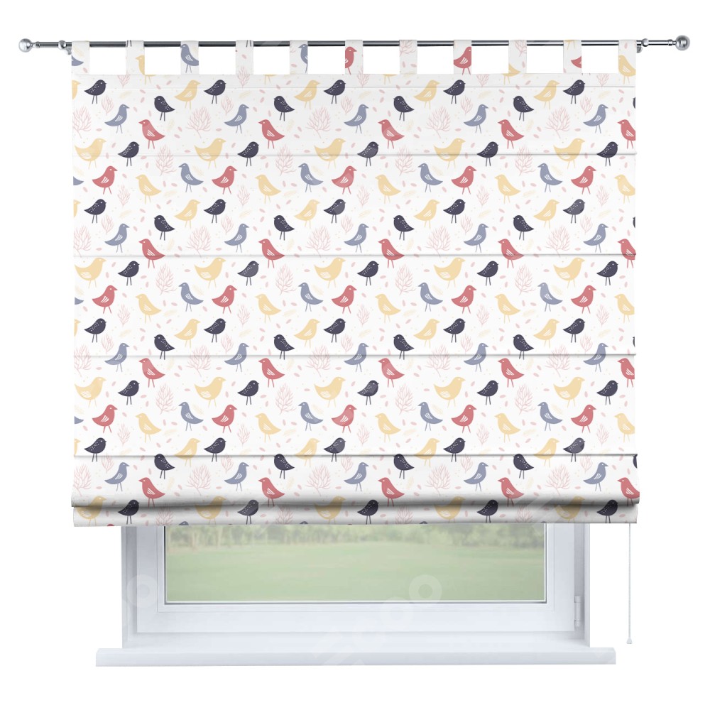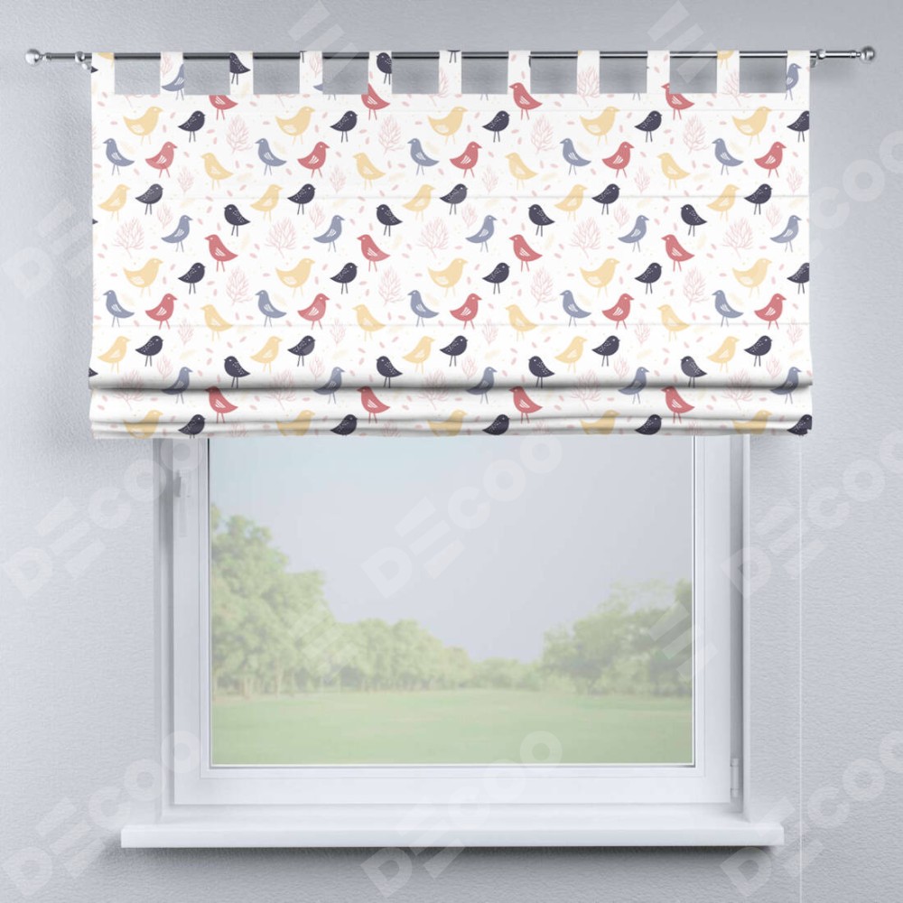 Римская штора производителя «Cortin», используется для проёма, пошита из ткани блэкаут с нанесением сублимационной печати «Цветные птички». Данная модель пошита на петлях, комплектуется на выбор круглым карнизом и подходит для монтажа на стену. Римская штора на петлях имеет простую систему регулировки высоты, отличительным преимуществом данной модели является простой способ монтажа. Достаточно повесить ее на трубу и штора готова!