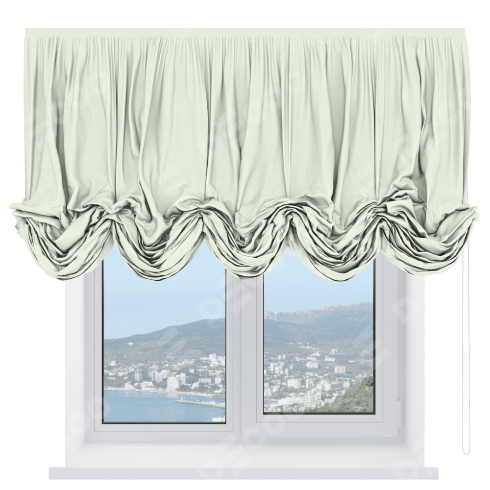 Австрийская штора производителя «Cortin», используется для проёма, пошита из ткани вельвет молочный, артикул ткани 85536. Имеет универсальный механизм и подходит для монтажа: на потолок и на стену.