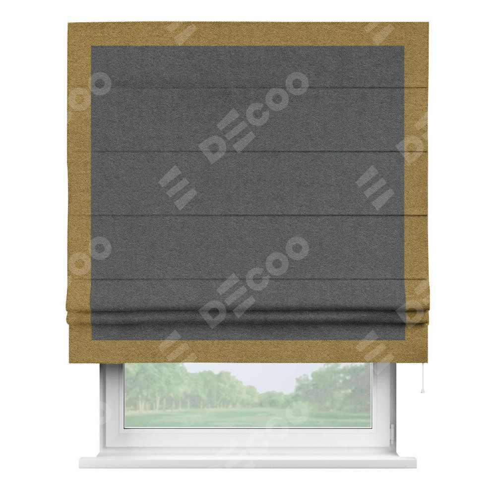 Римская штора «Кортин» для проема, твид блэкаут тёмно-серый, с кантом Чесс