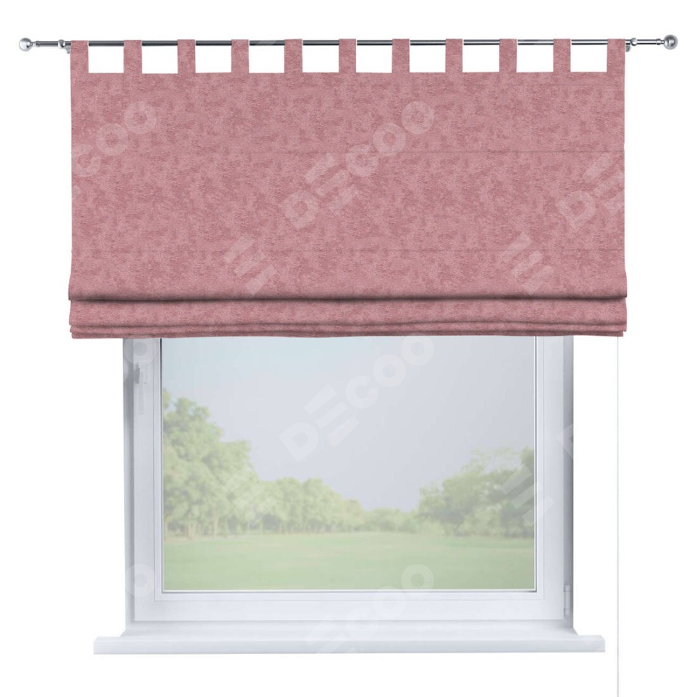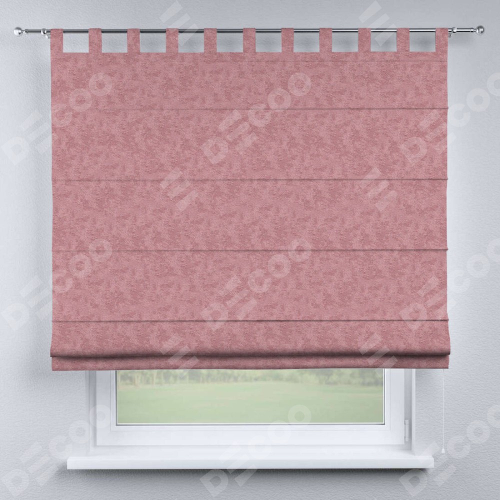 Римская штора производителя «Cortin», используется для проёма, пошита из ткани софт мрамор розовый, артикул ткани 93584. Данная модель пошита на петлях, комплектуется на выбор круглым карнизом и подходит для монтажа на стену. Римская штора на петлях имеет простую систему регулировки высоты, отличительным преимуществом данной модели является простой способ монтажа. Достаточно повесить ее на трубу и штора готова!