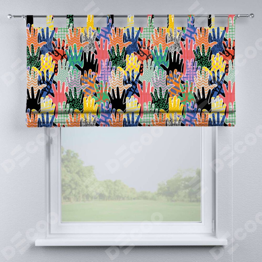 Римская штора производителя «Cortin», используется для проёма, пошита из ткани блэкаут с нанесением сублимационной печати «Коллаж поп-арт». Данная модель пошита на петлях, комплектуется на выбор круглым карнизом и подходит для монтажа на стену. Римская штора на петлях имеет простую систему регулировки высоты, отличительным преимуществом данной модели является простой способ монтажа. Достаточно повесить ее на трубу и штора готова!