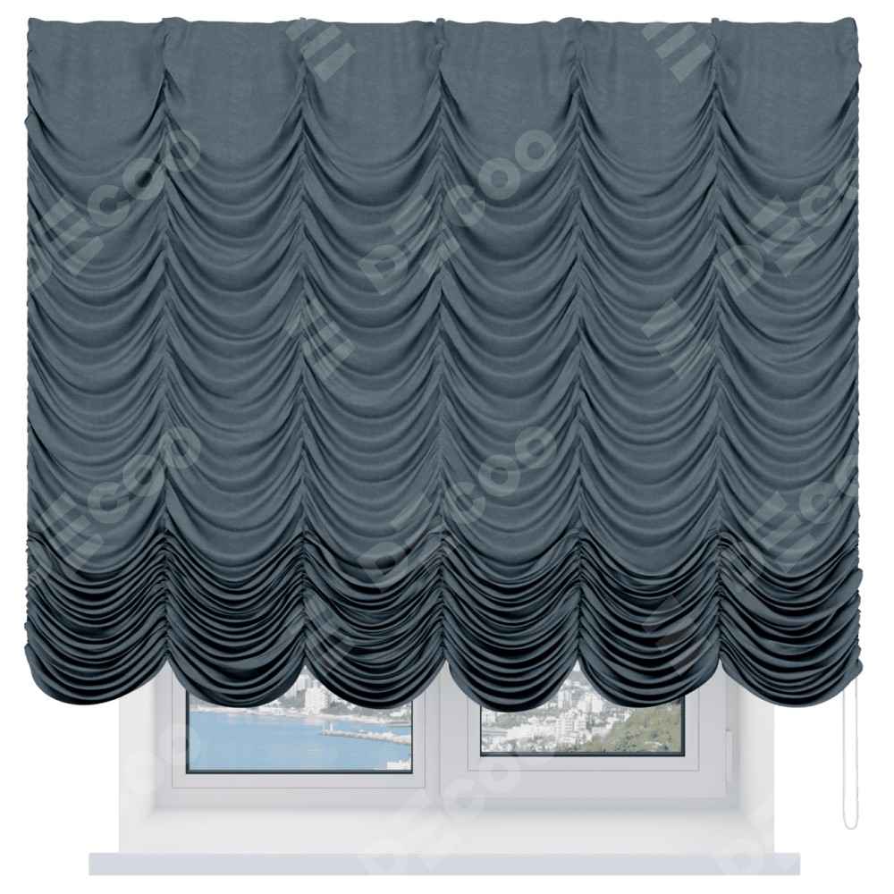 Французская штора производителя «Cortin», используется для проёма, пошита из ткани вельвет серый, артикул ткани 85542. Имеет универсальный механизм и подходит для монтажа: на потолок и на стену.