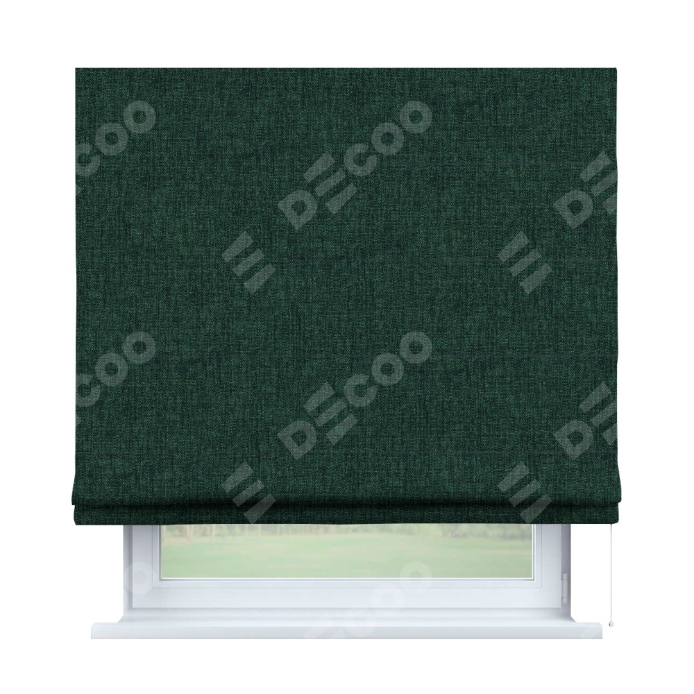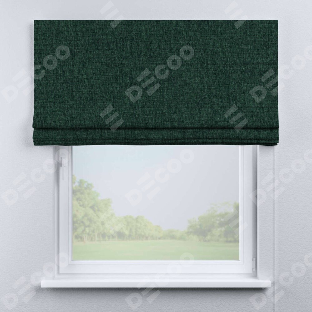 Классическая римская штора производителя «Cortin», пошита из ткани рогожка димаут тёмно-зелёный, артикул: 91022. Имеет универсальный механизм и подходит для монтажа: на потолок, на стену и в нишу.