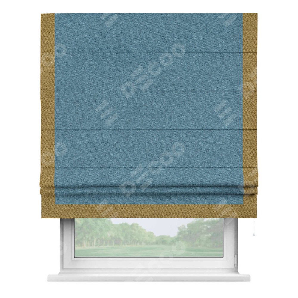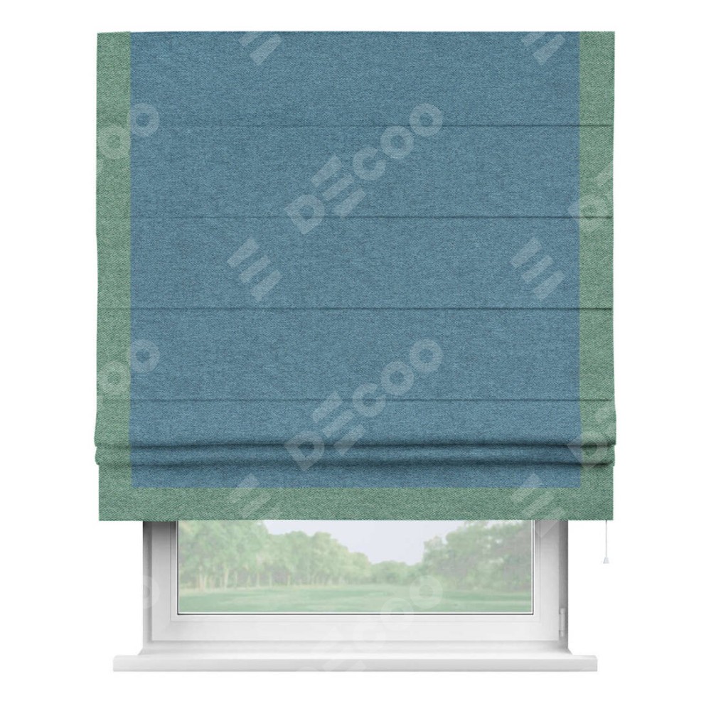 Римская штора с отделкой кантом «Виктория», пошита из ткани твид блэкаут светло-синий, артикул: 90935. представляет собой элегантное решение для оконного оформления. Кант по бокам и снизу шторы добавляет изысканности и аккуратности внешнему виду, подчеркивая линии и форму шторы. Этот элемент декора не только украшает, но и выполняет практическую функцию, защищая края ткани от износа. Кант может быть выполнен в контрастном или гармонирующем цвете, что позволяет добиться различных стилевых эффектов и легко вписать штору в интерьер комнаты.
