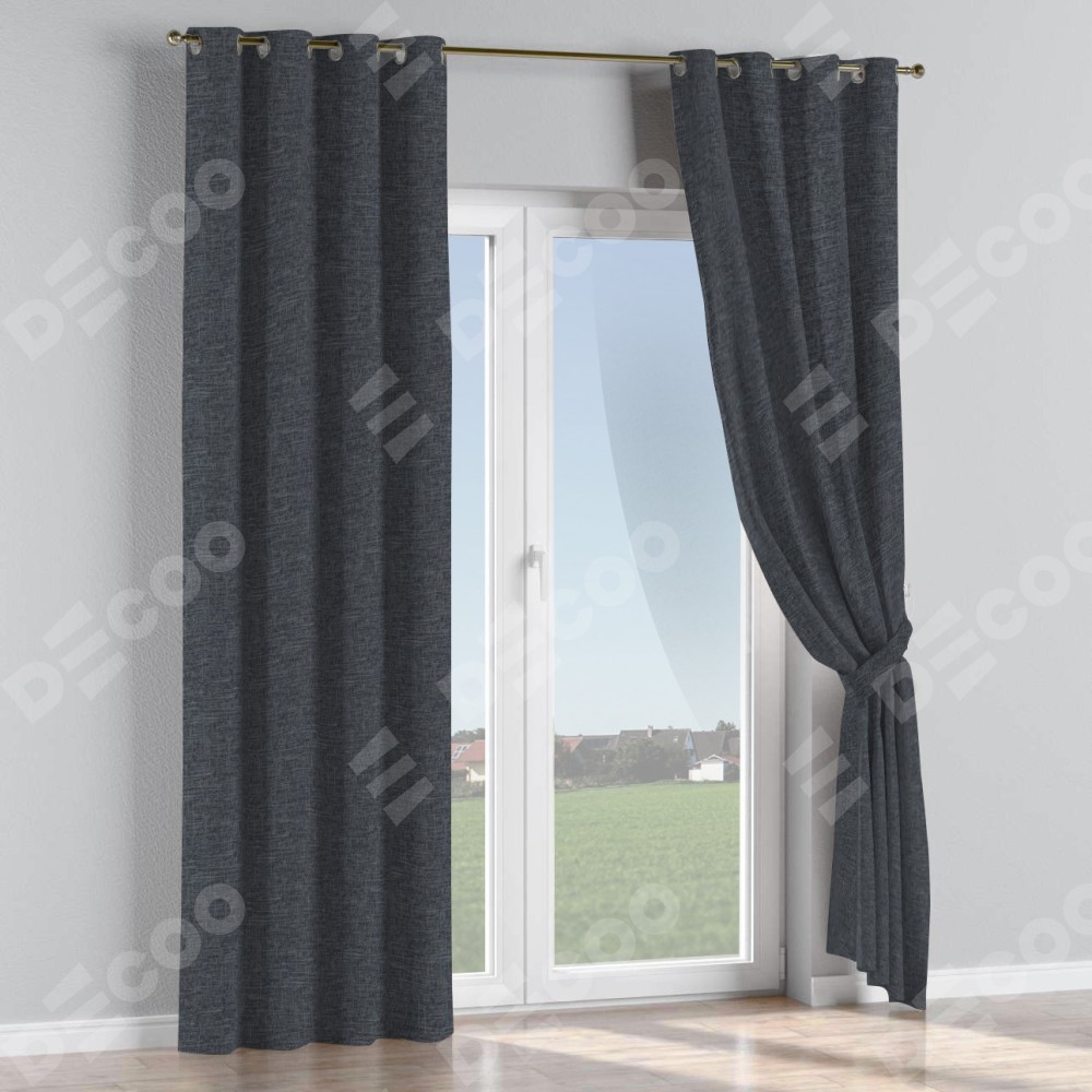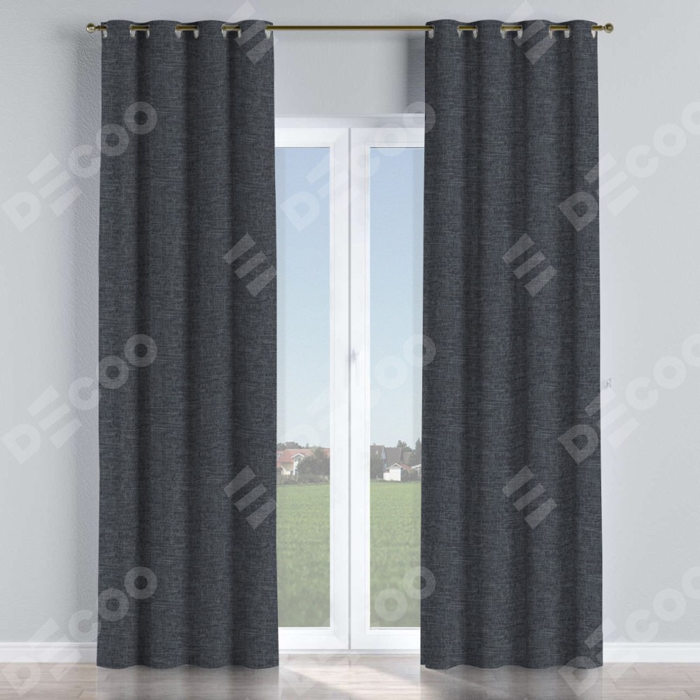 Комплект прямых штор, от производителя «Cortin», пошиты из ткани рогожка димаут графит, артикул ткани 90950. Данная модель пошита на люверсах, комплектуется на выбор круглым карнизом и подходит для монтажа на стену или потолок. Прямые шторы на люверсах шьются по стандарту с коэффициентом 1/2 (на 100 см. ширины проёма 200 см. ширины ткани), отличительным преимуществом данной модели является простой способ монтажа. Достаточно повесить ее на трубу и штора готова!