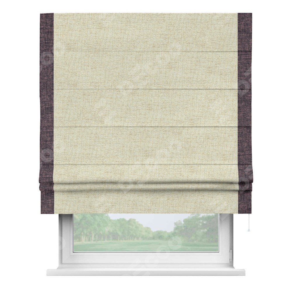 Римская штора «Кортин» для проёма, рогожка димаут золотой песок, с кантом Стрим Дуо