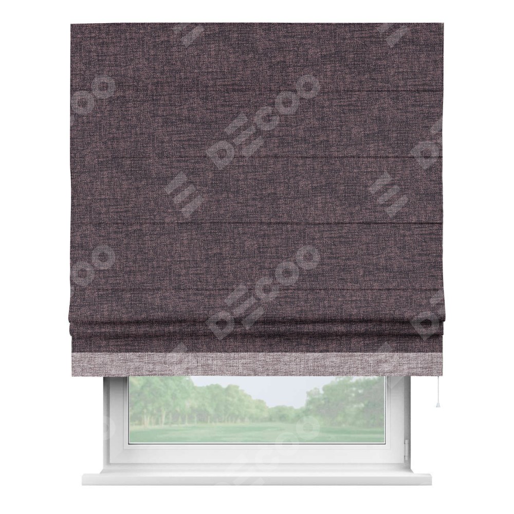 Римская штора пошита из ткани рогожка димаут розово-коричневый, артикул: 91020, с отделкой кантом «Джестер» выделяется своей уникальной особенностью — кантом, расположенным только снизу шторы. Этот дизайн добавляет оригинальности и игривости оконному оформлению, делая акцент на нижней части шторы и создавая интересный визуальный эффект. Отделка кантом на нижнем крае не только служит эстетической функции, но и способствует увеличению прочности и износостойкости ткани в этом месте.