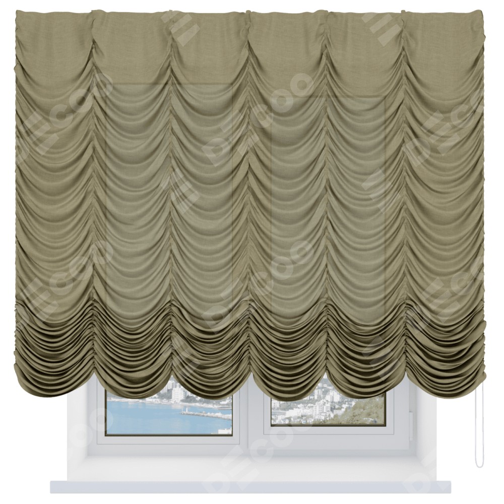 Французская штора «Кортин», выполнена из льна, цвет коричневый