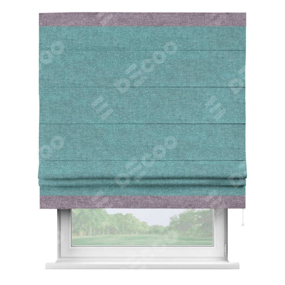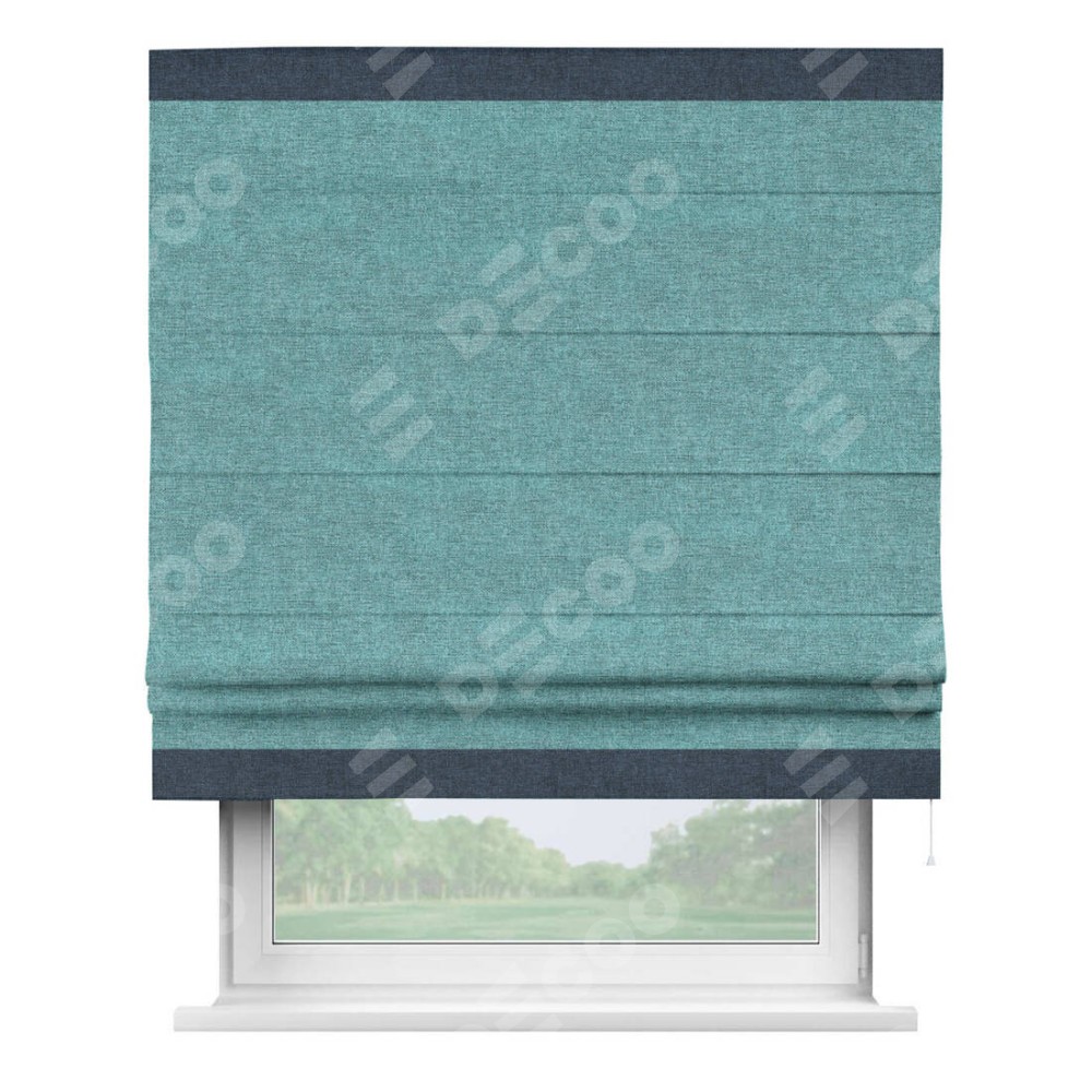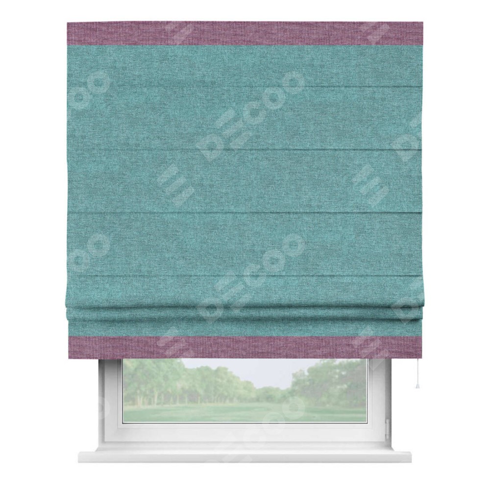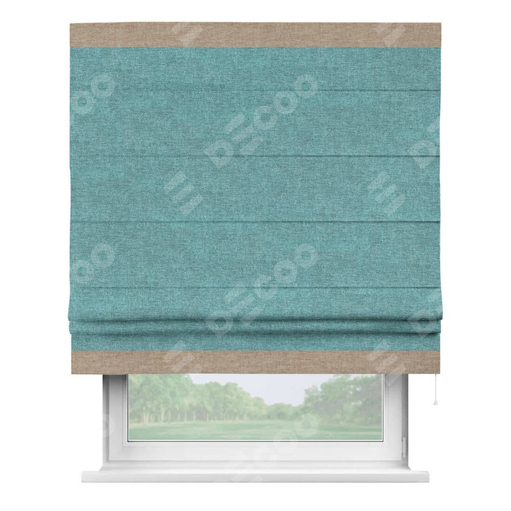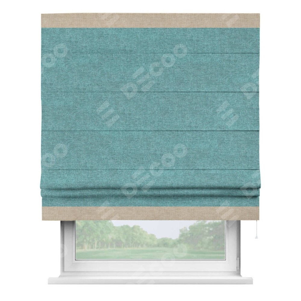 Римская штора «Кортин» с кантом Горизонт, для проема, ткань лён кашемир бирюзовый