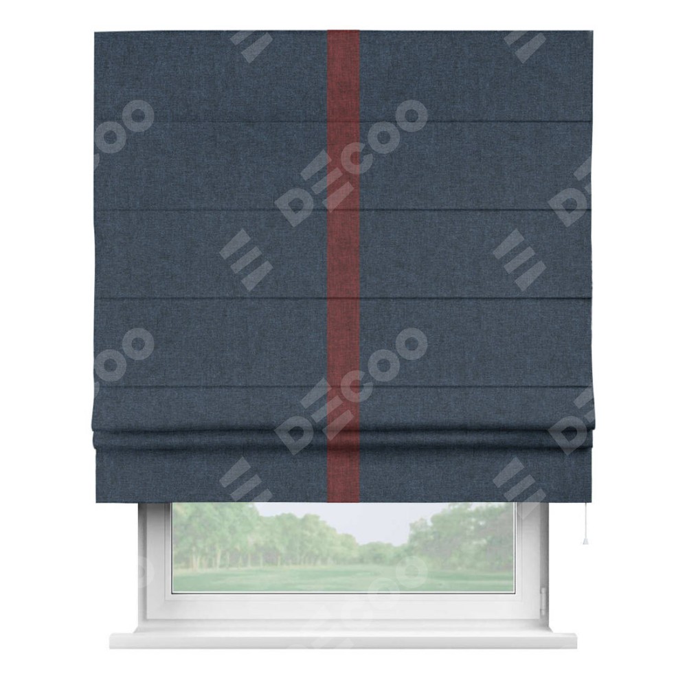 Римская штора «Кортин» для проёма, лён кашемир синий, с кантом Хайвэй