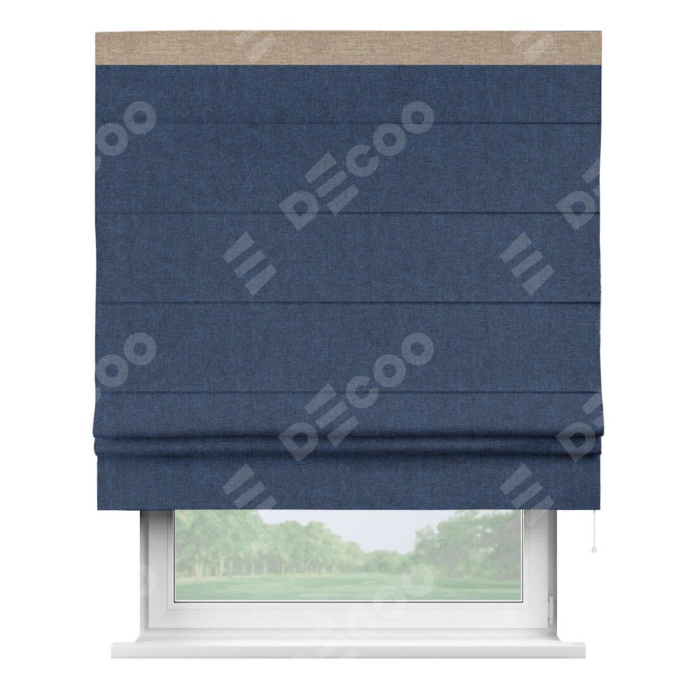 Римская штора «Кортин» для проёма, лён кашемир тёмно-синий, с кантом Кинг