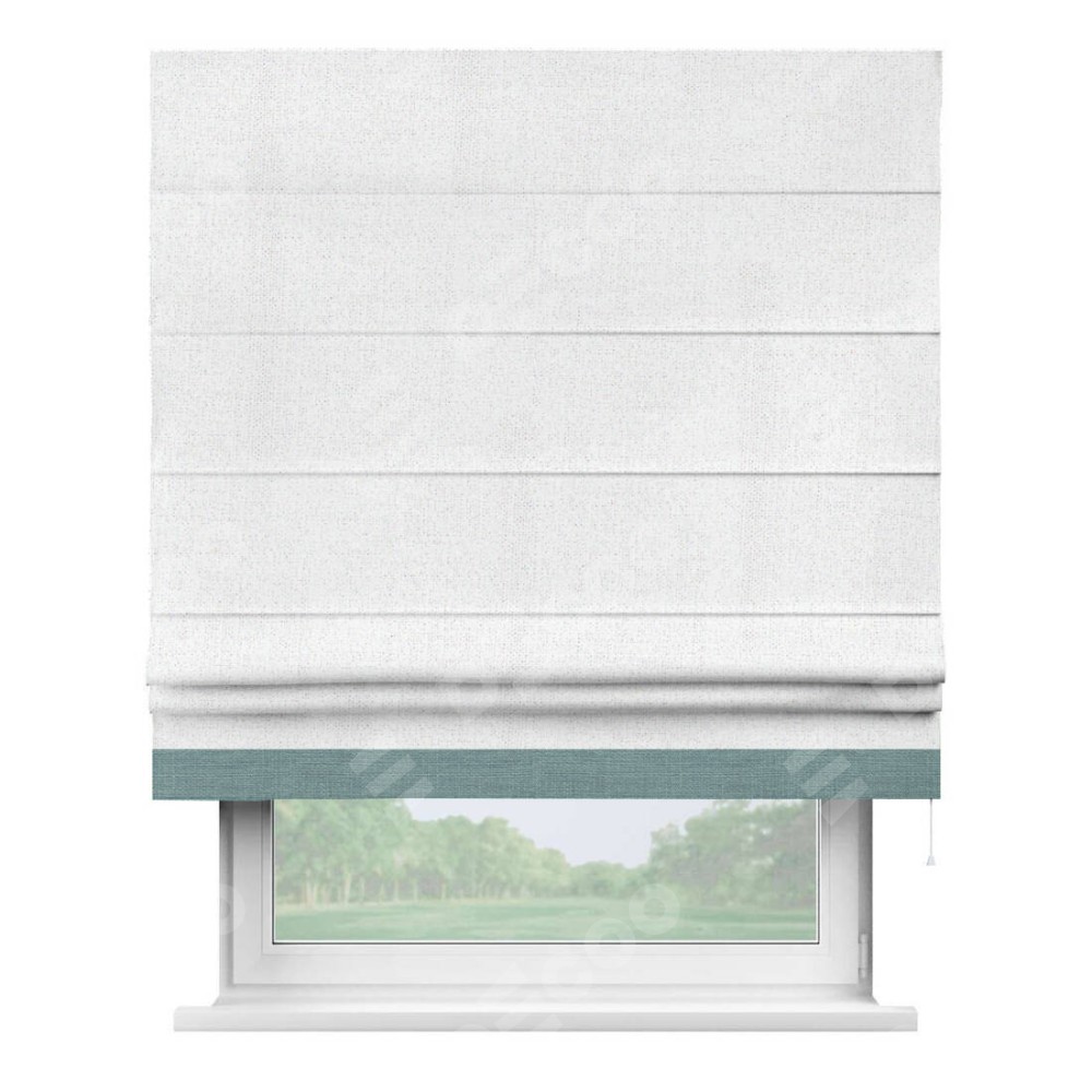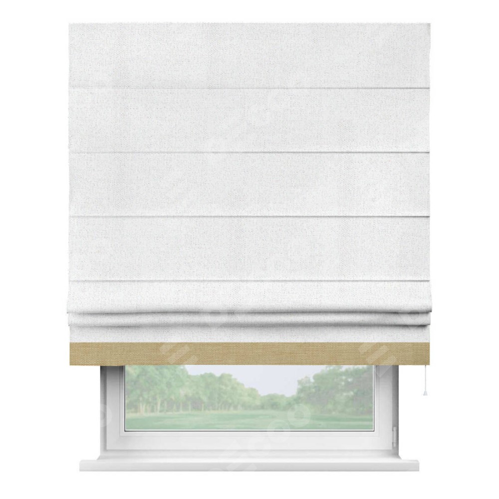 Римская штора «Кортин» для проема, лён белоснежный, с кантом Джестер