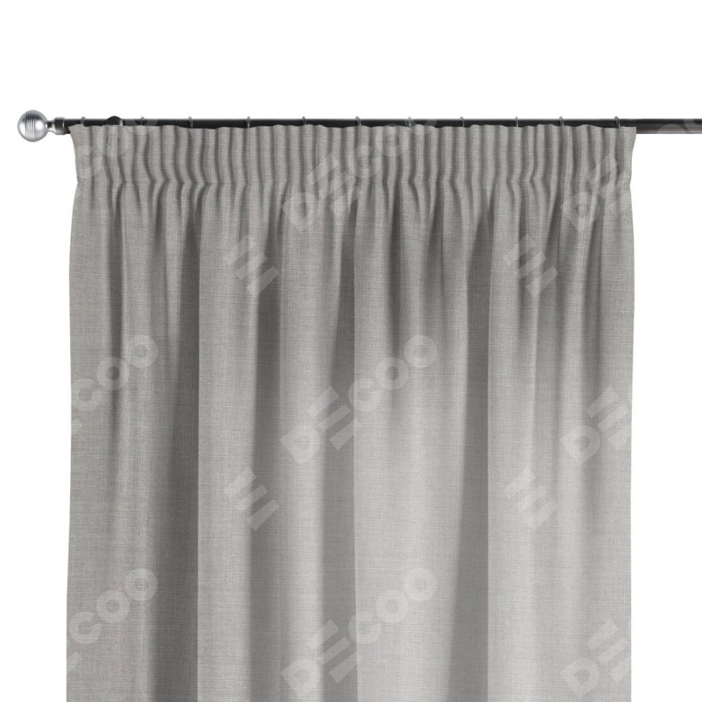 Комплект прямых штор, от производителя «Cortin», пошиты из ткани лён серый, артикул ткани 91410. С изнаночной стороны в верхней части штор пристрачивается шторная лента с декоративными складками «Карандаш». Для создания элегантных складок прямые шторы шьются по стандарту с коэффициентом 1:2 (на 100 см. ширины проёма 200 см. ширины ткани).