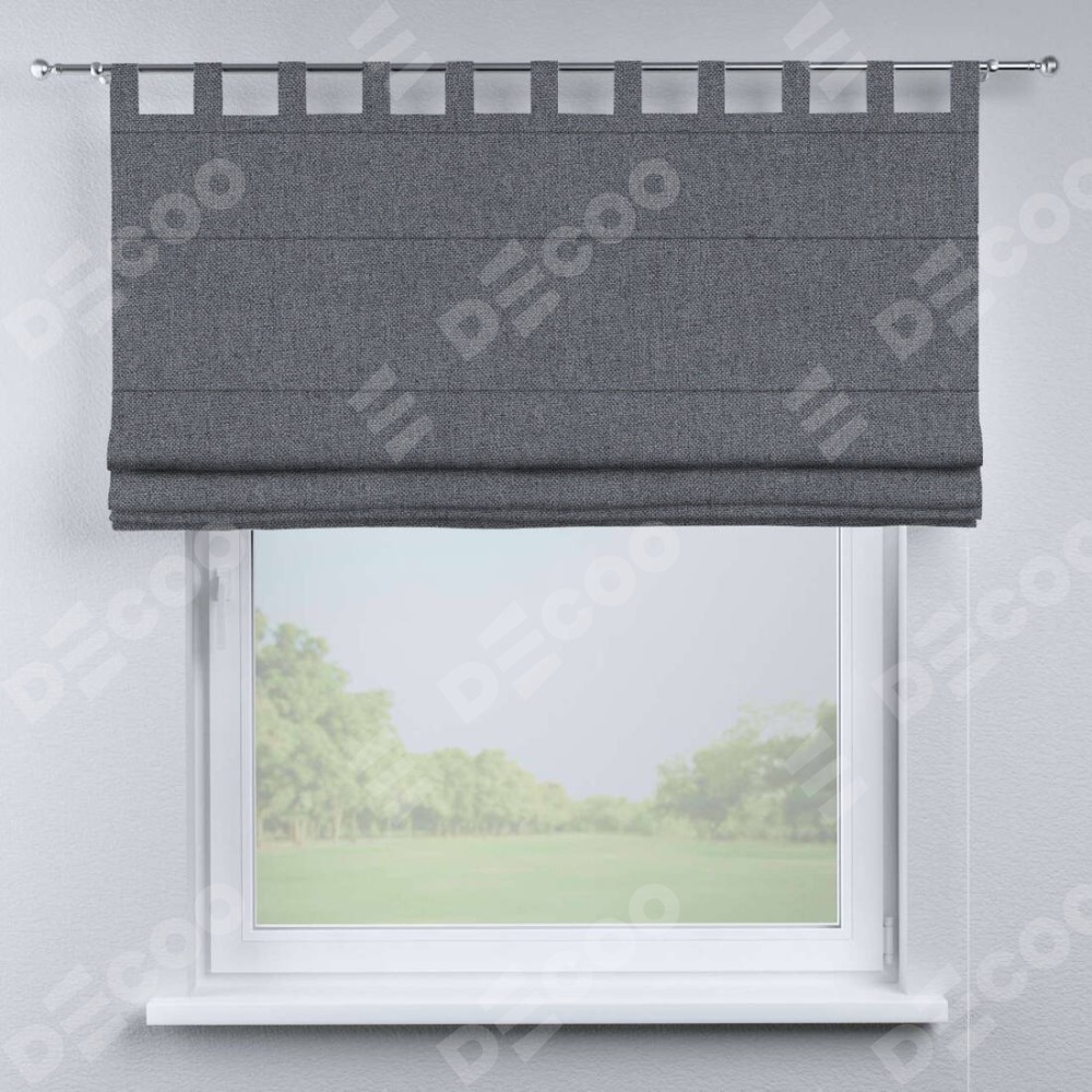 Римская штора на петлях «Кортин», ткань лён блэкаут, тёмно-серый
