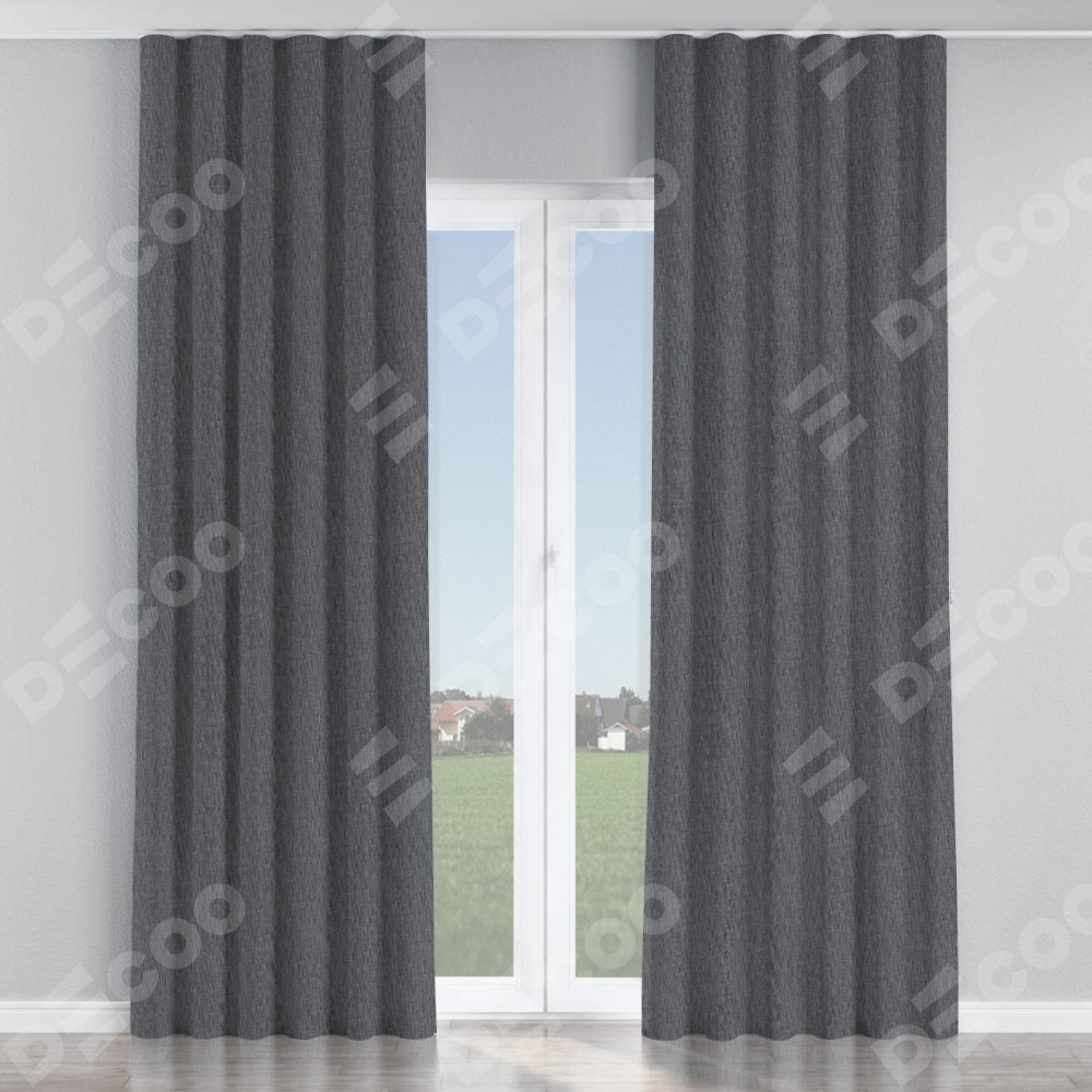 Комплект прямых штор, от производителя «Cortin», пошиты из ткани лён димаут графит, артикул ткани 140644. С изнаночной стороны в верхней части штор пристрачивается шторная лента с декоративными складками «Волна». Для создания элегантных складок рекомендуемый коэффициент 1:2 (на 100 см. ширины проёма 200 см. ширины ткани). Важно! Ширина штор указана без учёта коэффициента сборки!