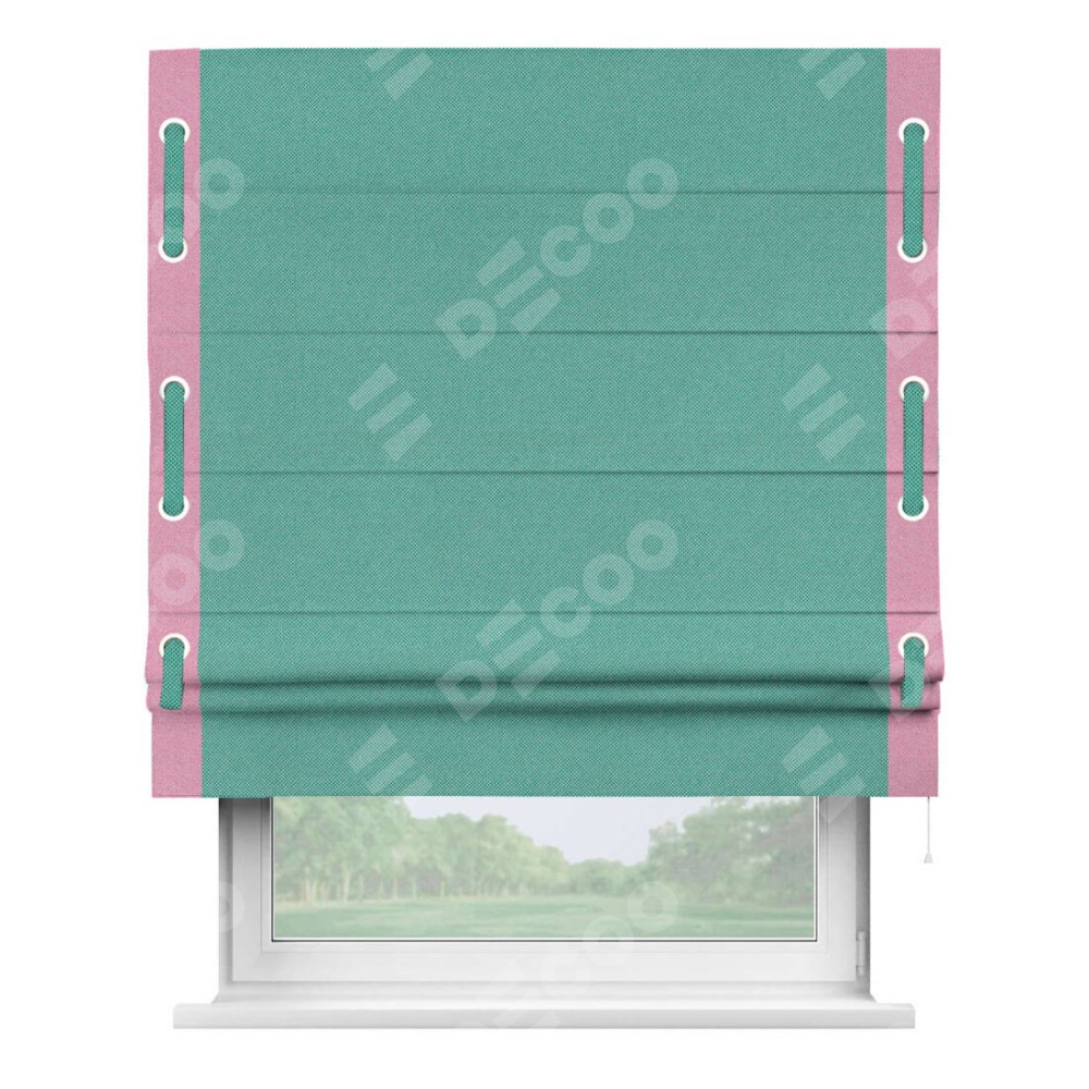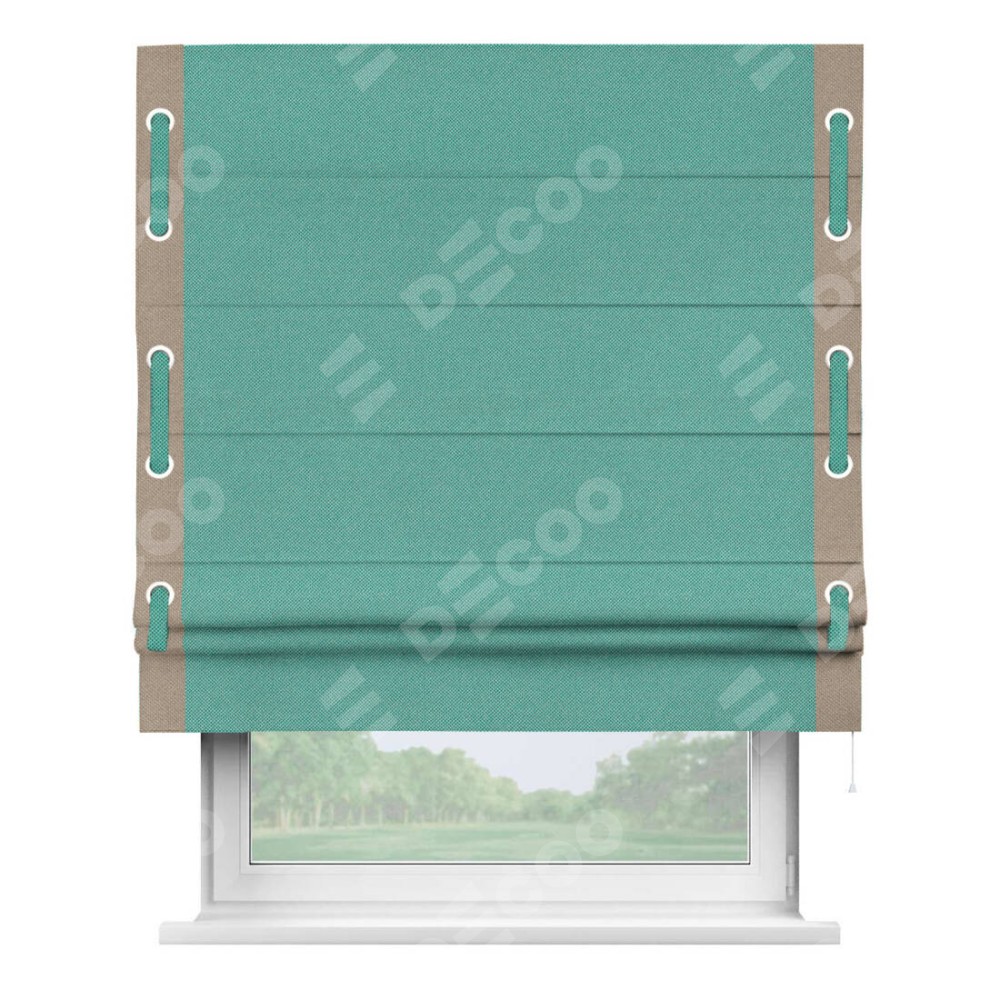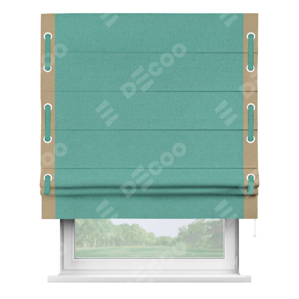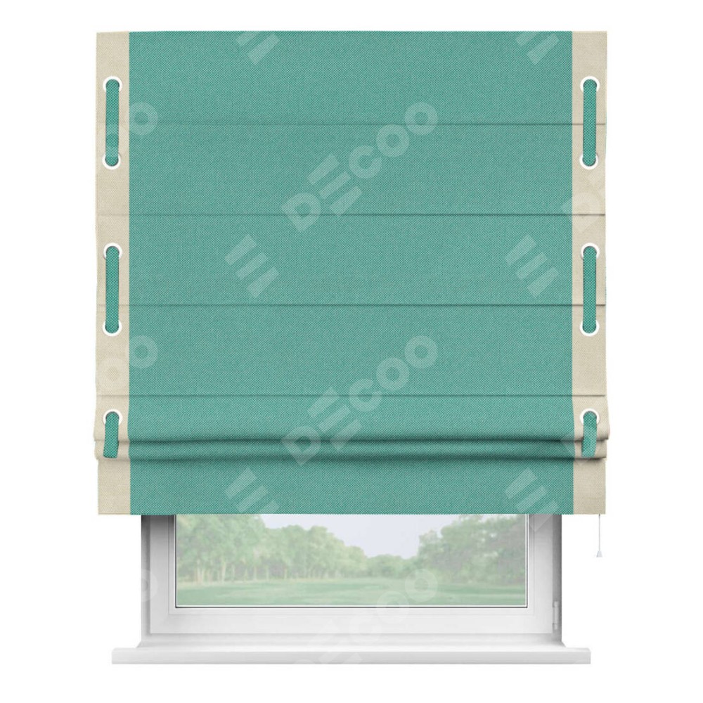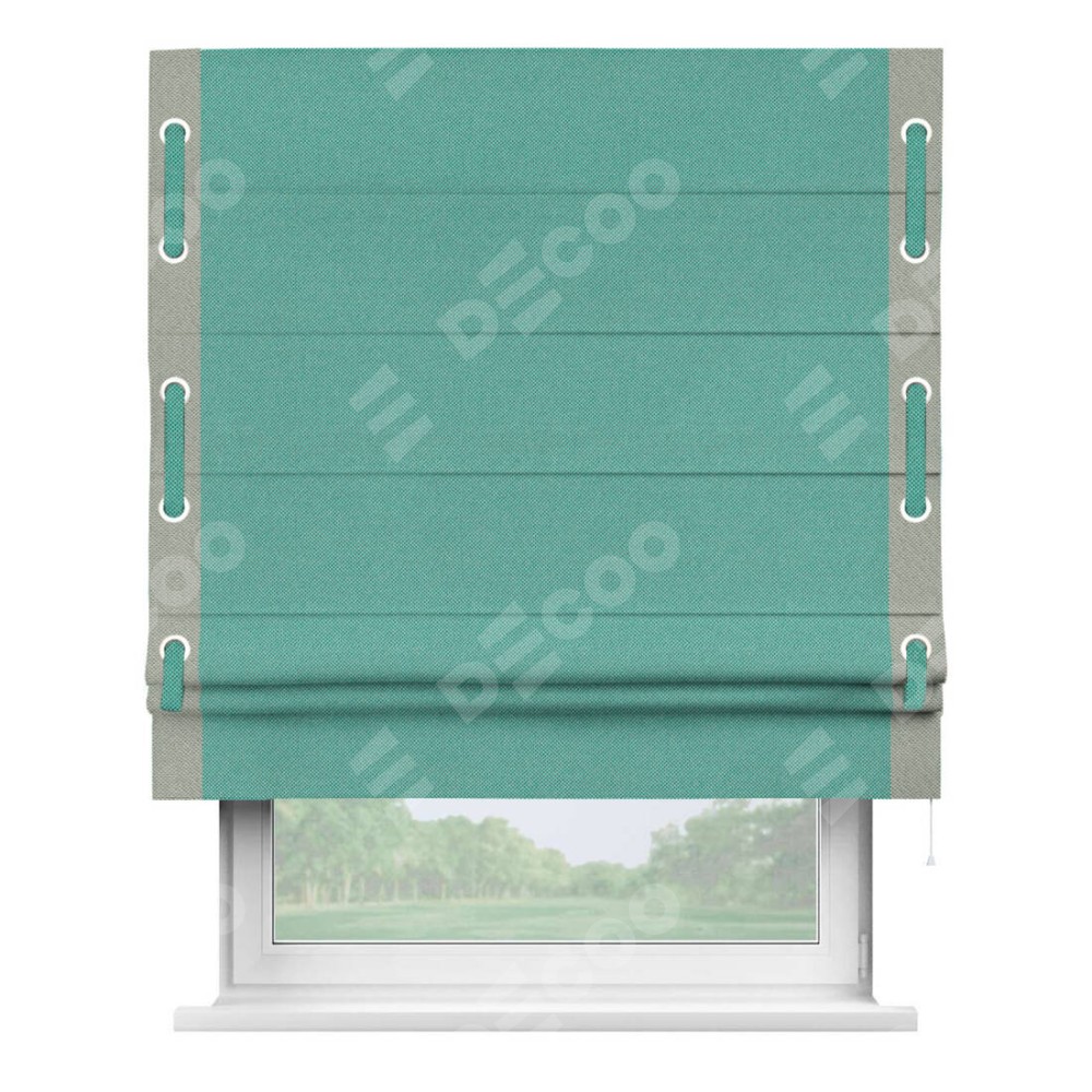 Римская штора «Кортин» с кантом Стрим Дуо (люверсы с пояском), для проема, ткань лён димаут, бирюзовый