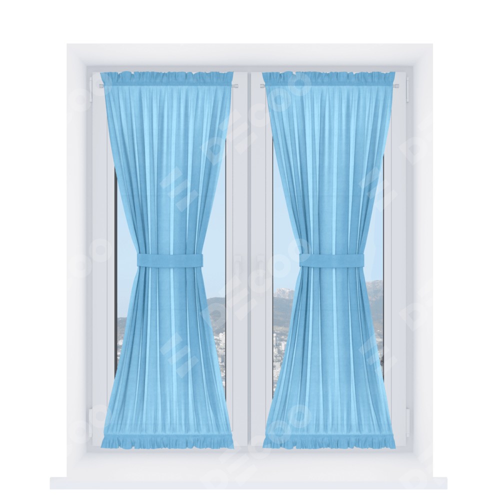 Штора «Песочные часы» производителя «Cortin», используется для створок окон и дверей, пошита из ткани вельвет голубой, артикул ткани 85544.