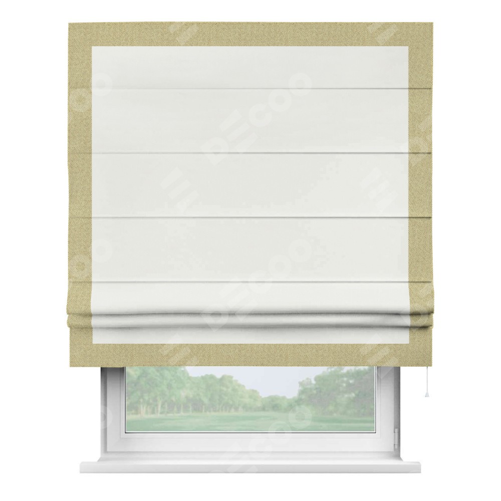 Римская штора «Кортин» для проема, лён димаут молочный с кантом Чесс
