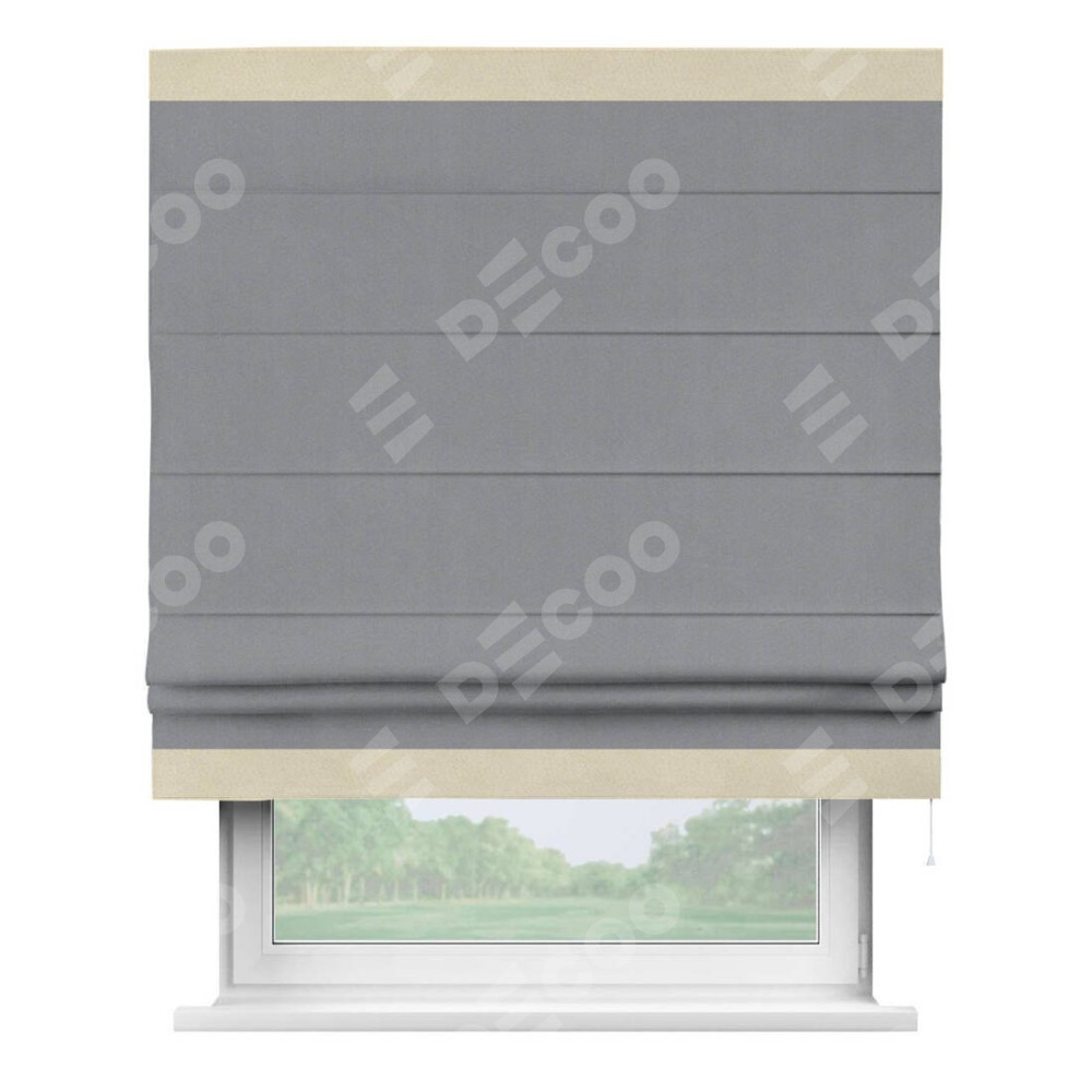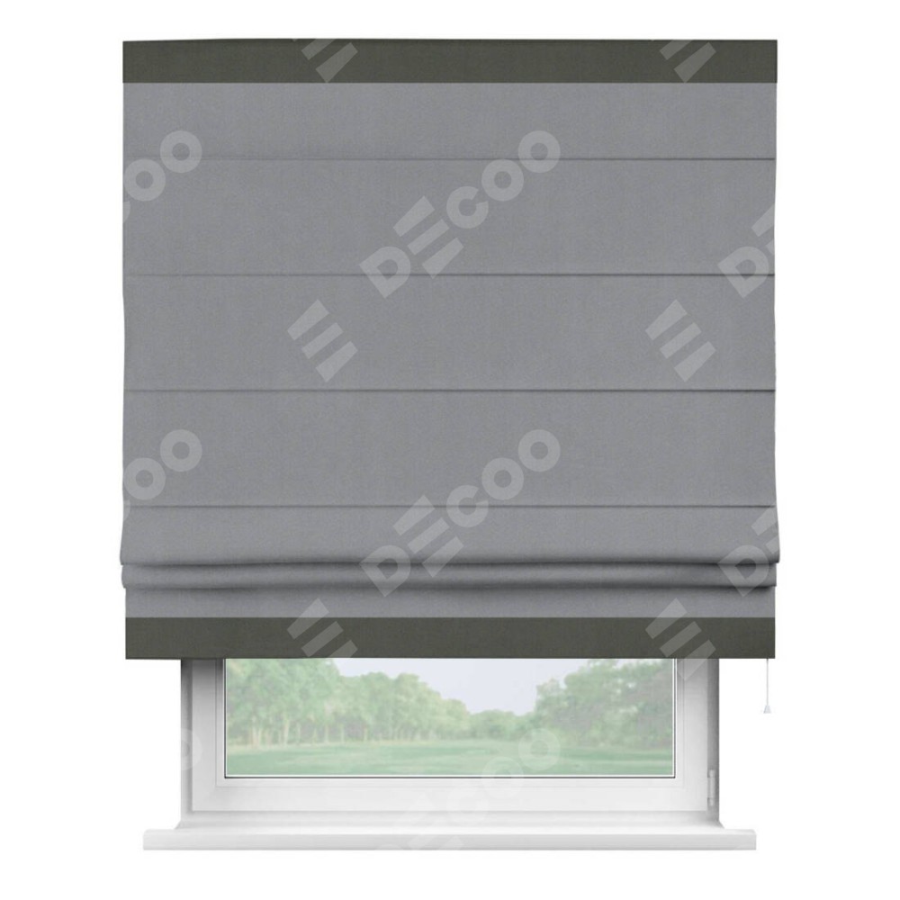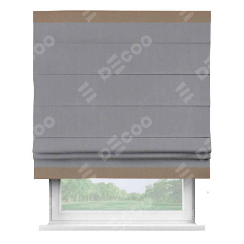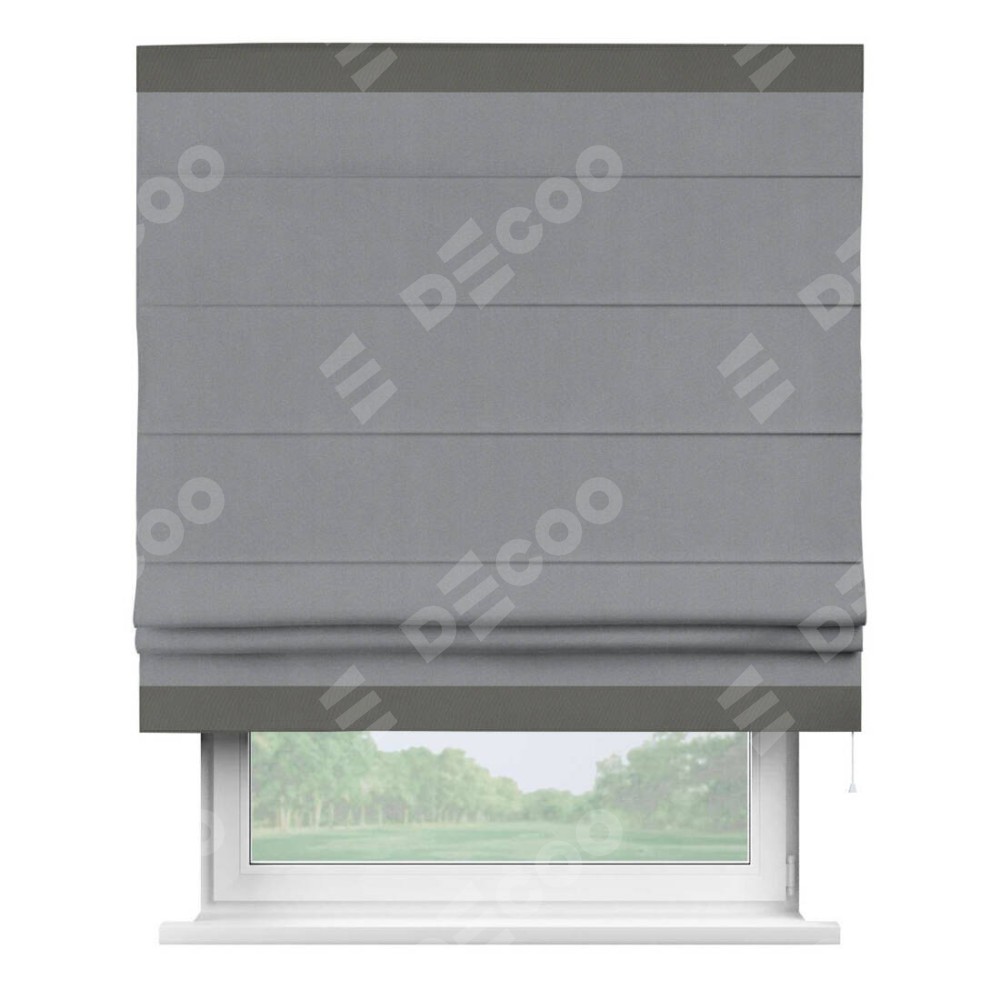 Римская штора «Кортин» для проема, блэкаут однотонный серый с кантом Горизонт