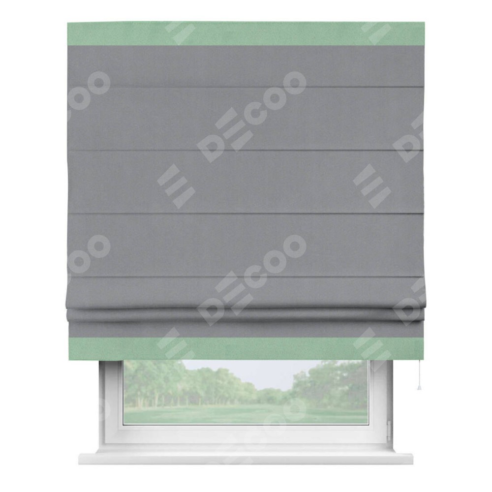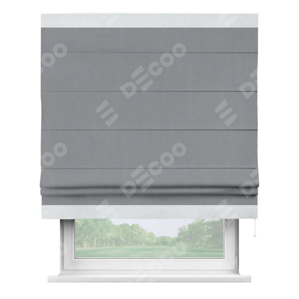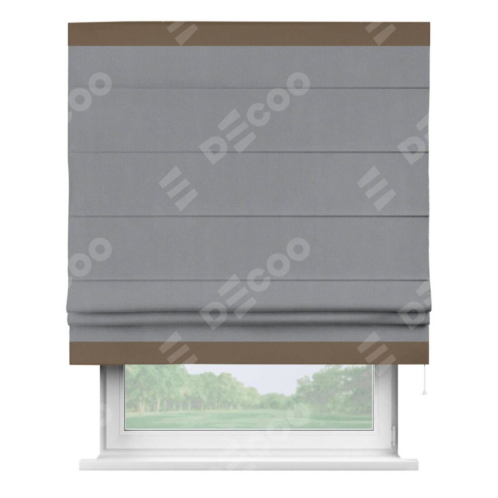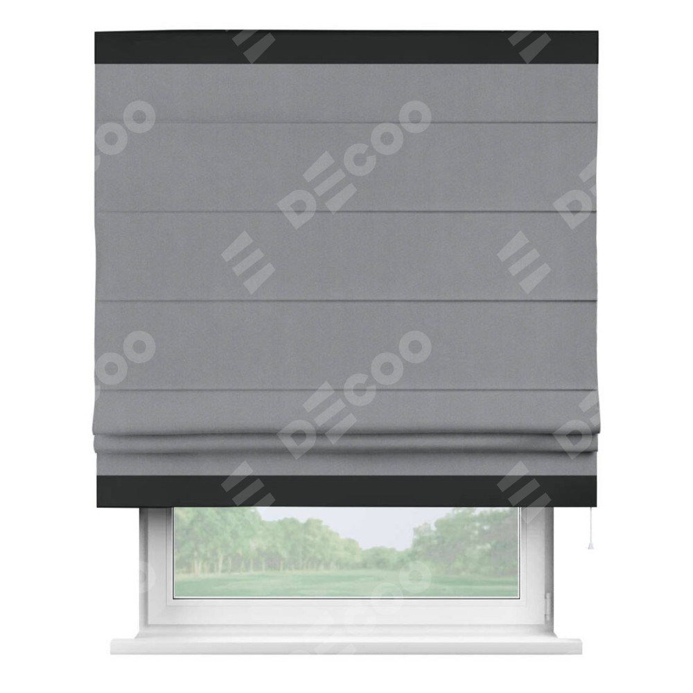 Римская штора «Кортин» для проема, блэкаут однотонный серый с кантом Горизонт