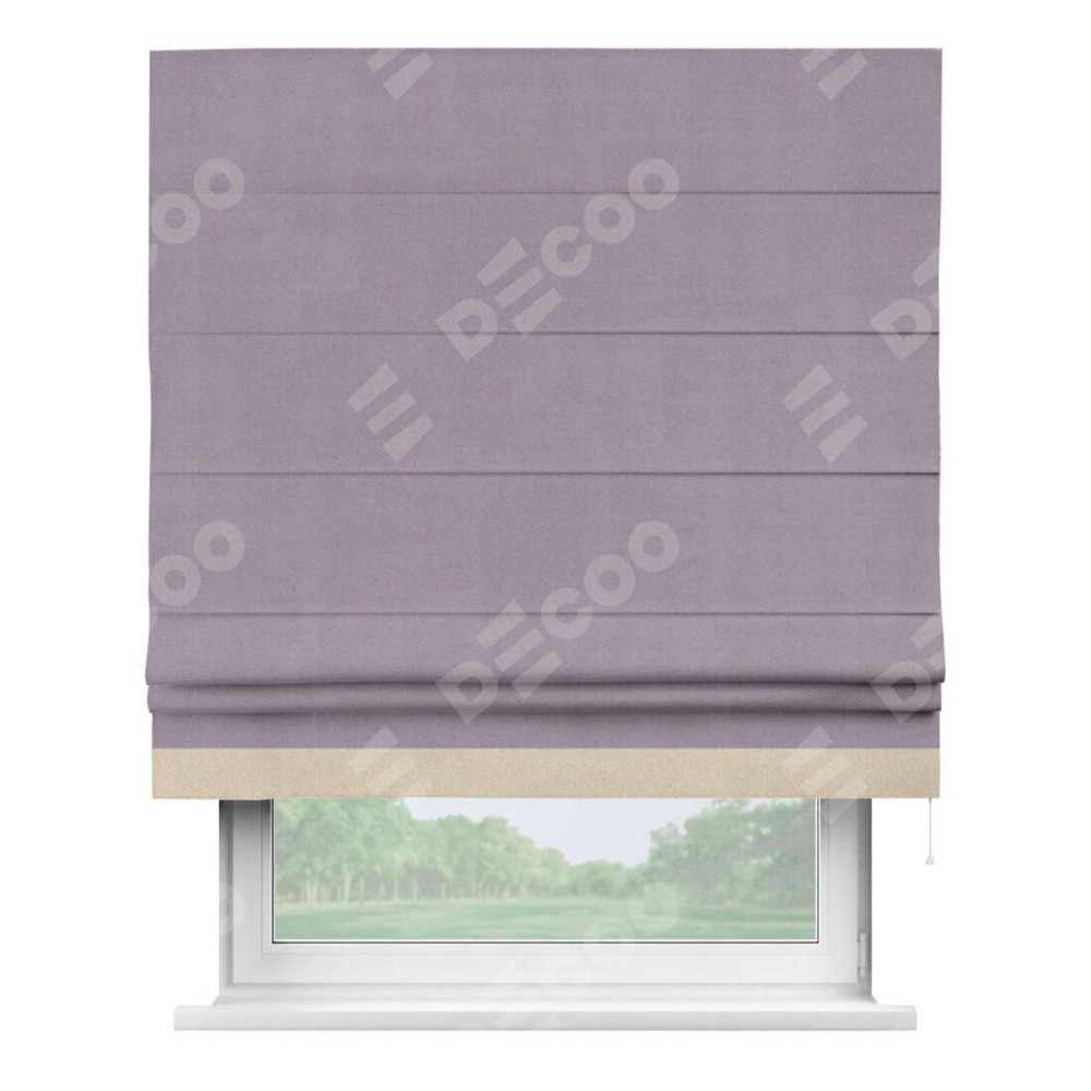 Римская штора «Кортин» для проёма, блэкаут однотонный лиловый с кантом Джестер