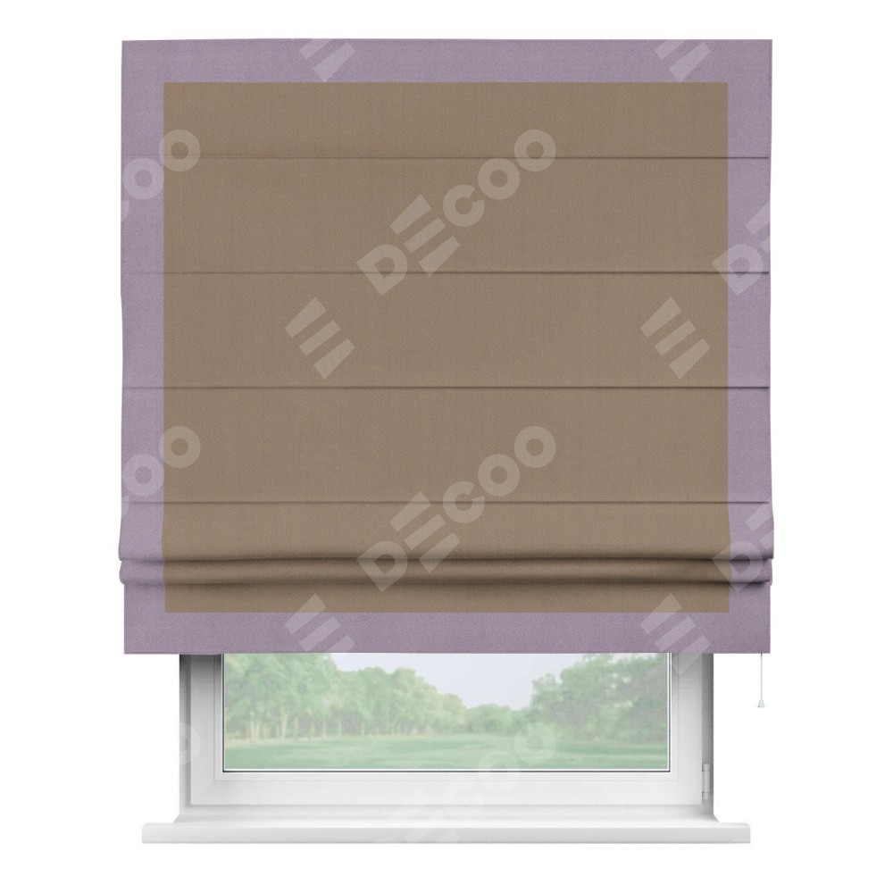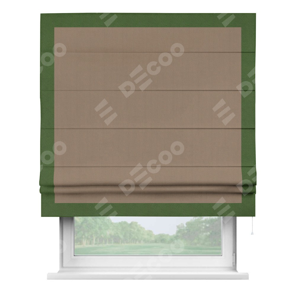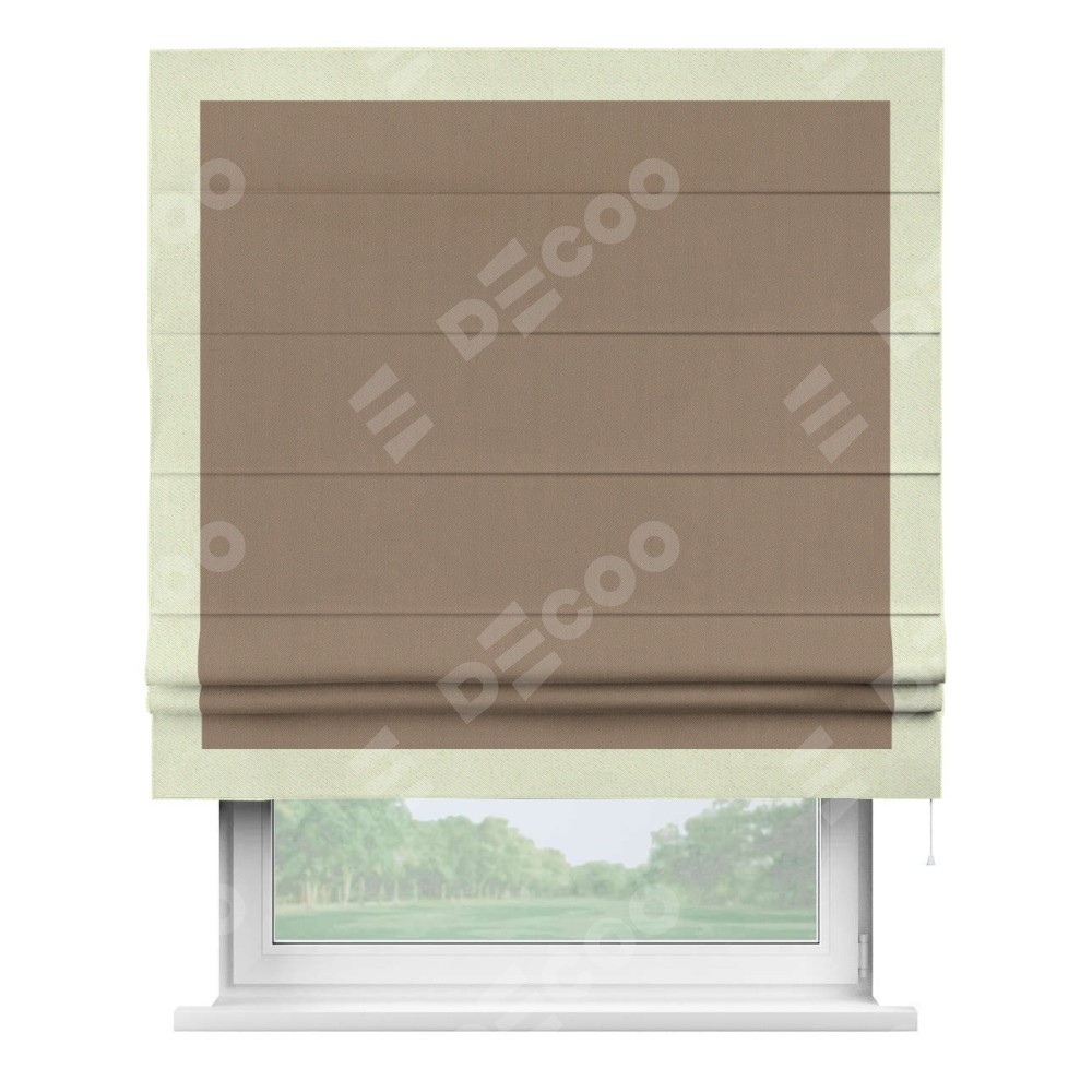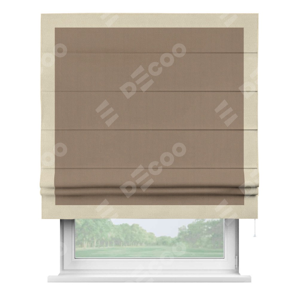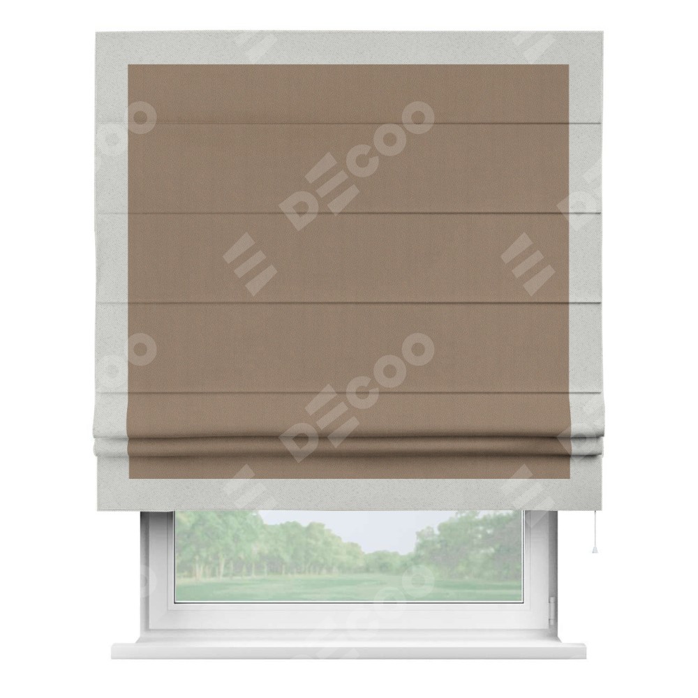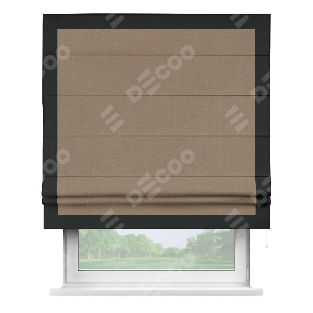 Римская штора «Cortin» для проёма, ткань блэкаут однотонный кофейно-бежевый с кантом Чесс