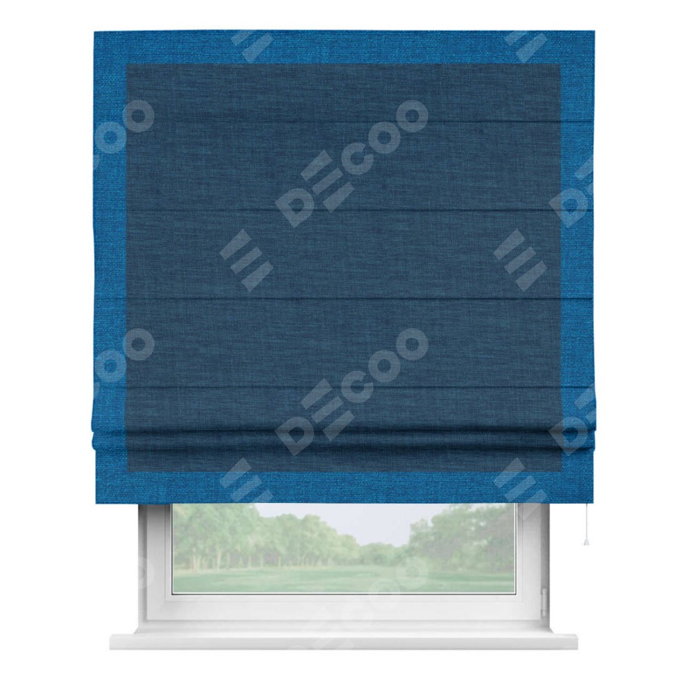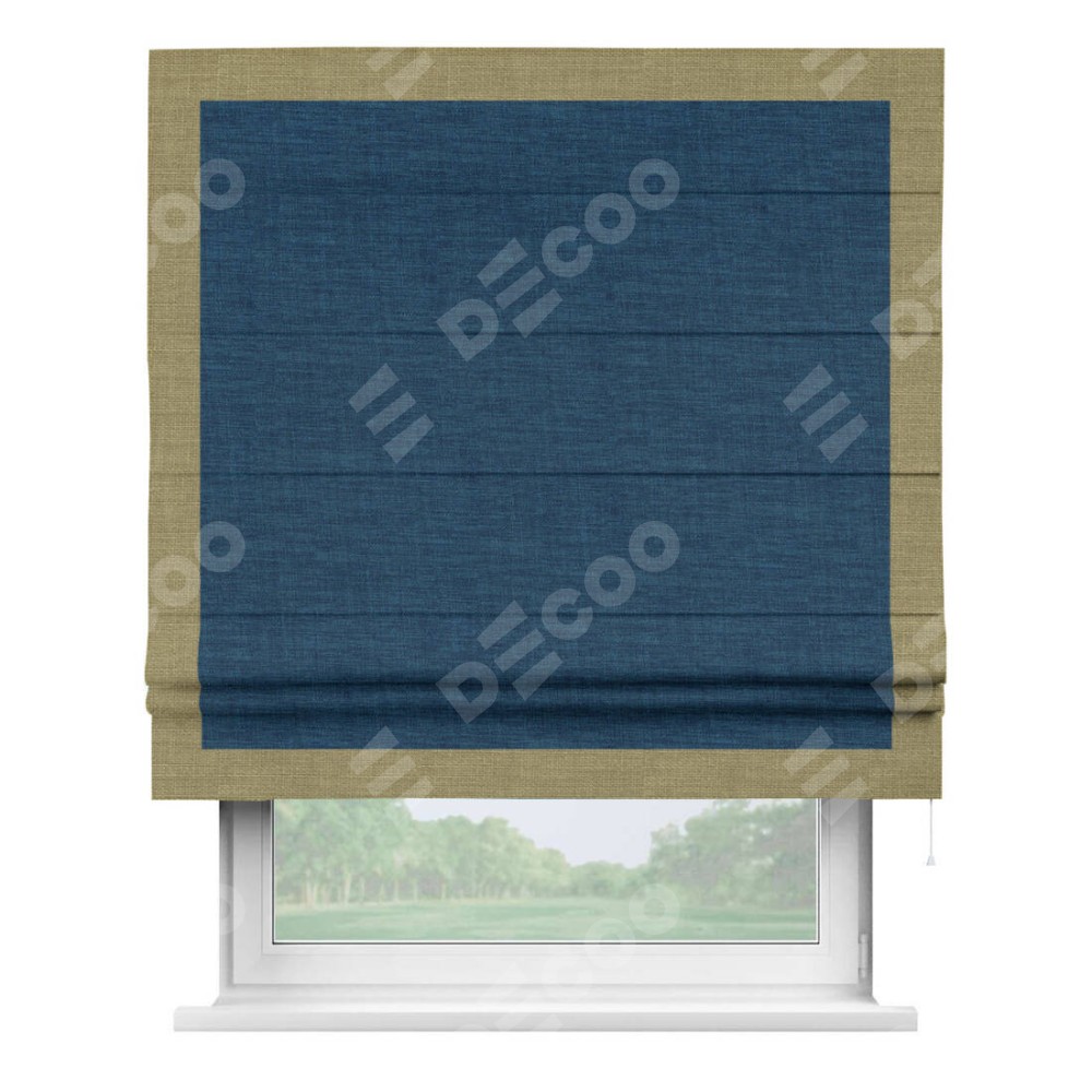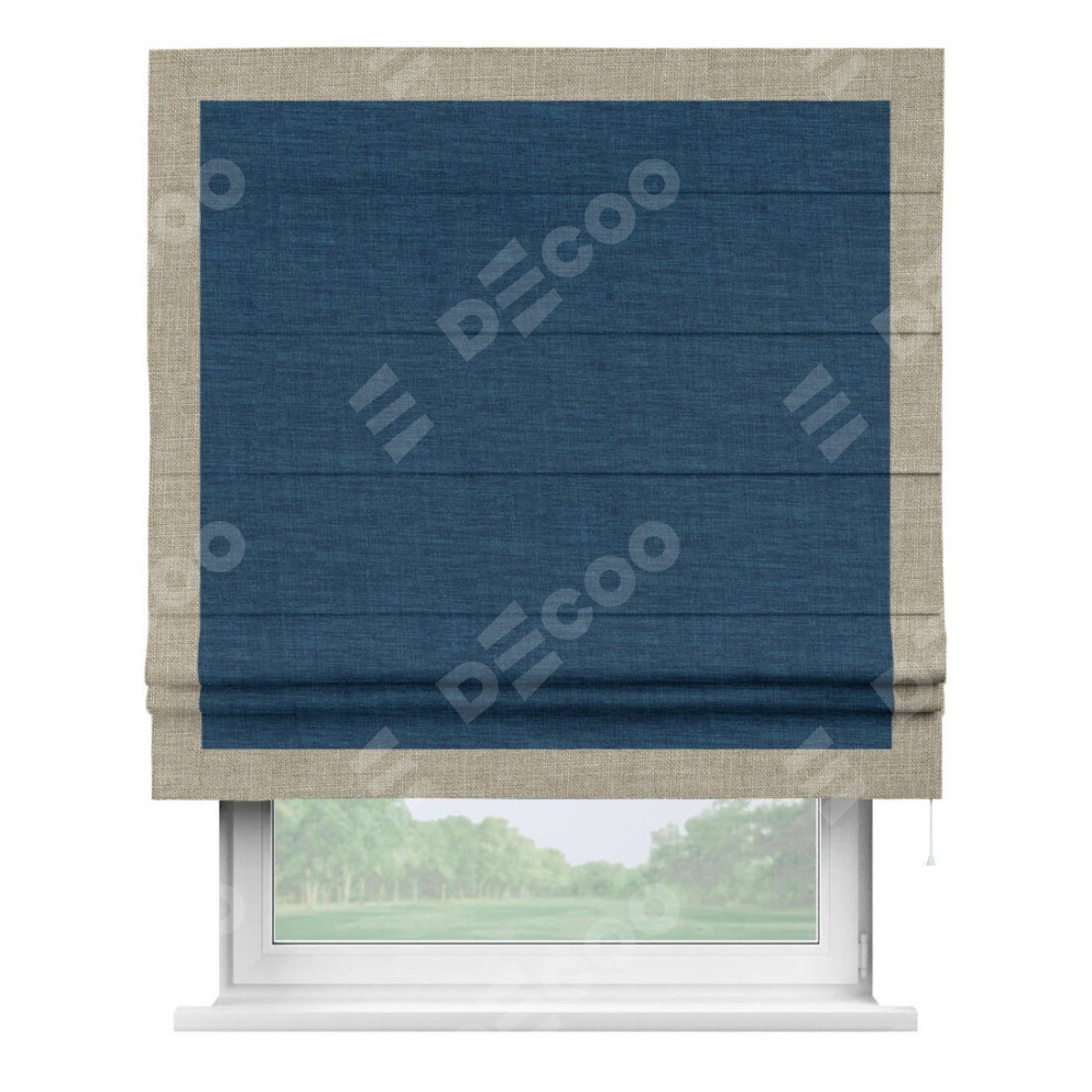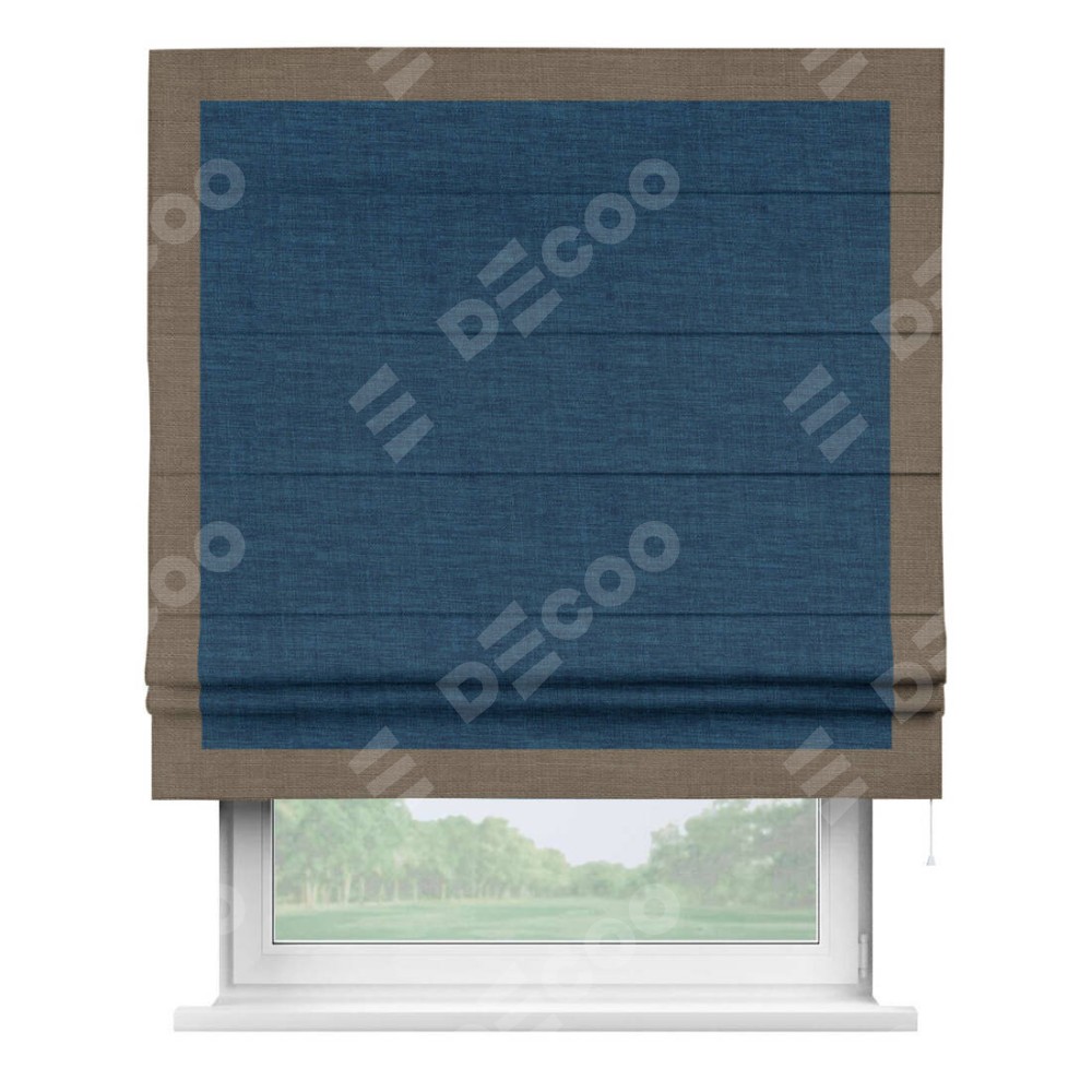 Римская штора «Кортин» для проёма, лён синий, с кантом Чесс