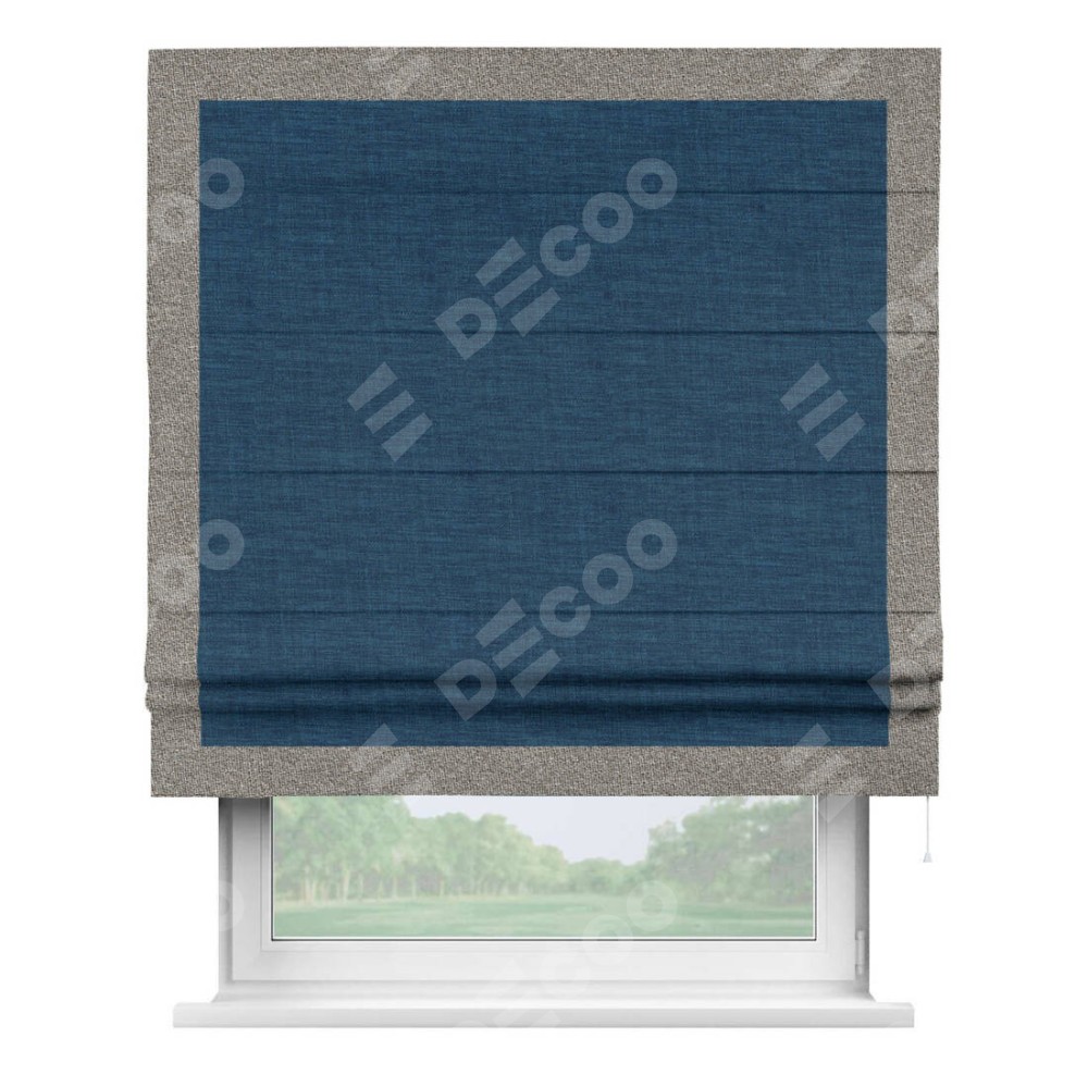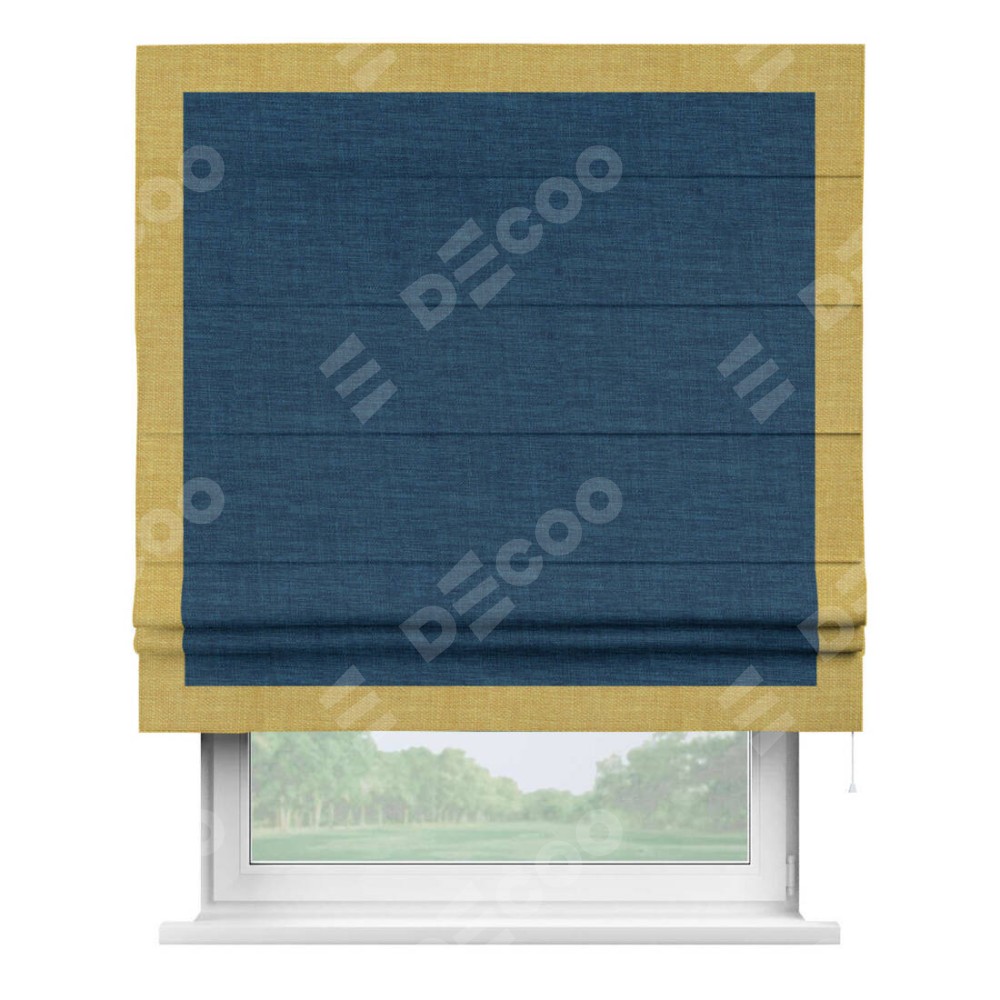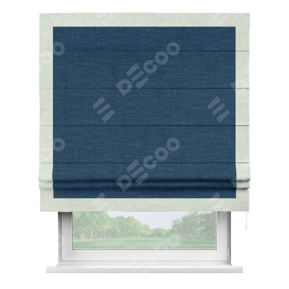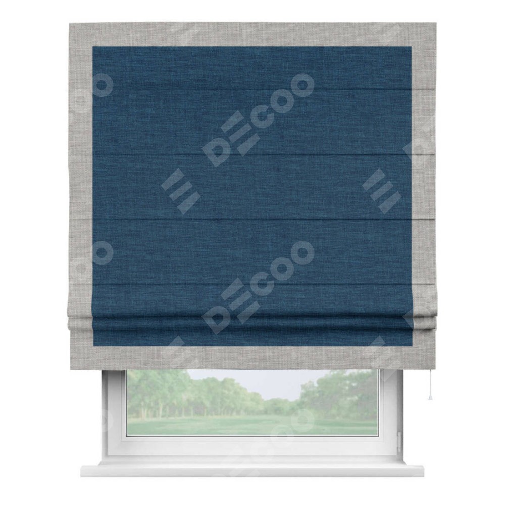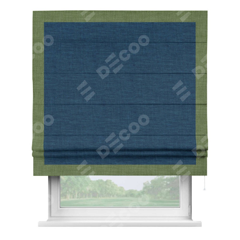 Римская штора «Кортин» для проёма, лён синий, с кантом Чесс