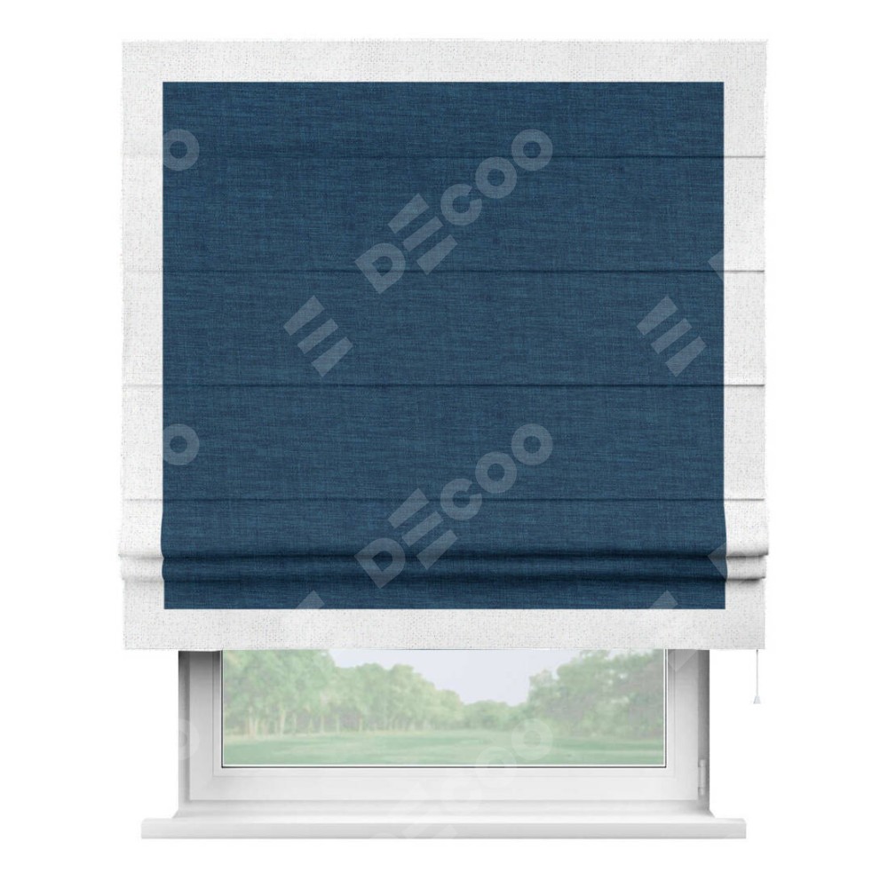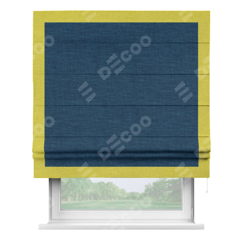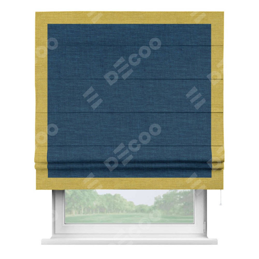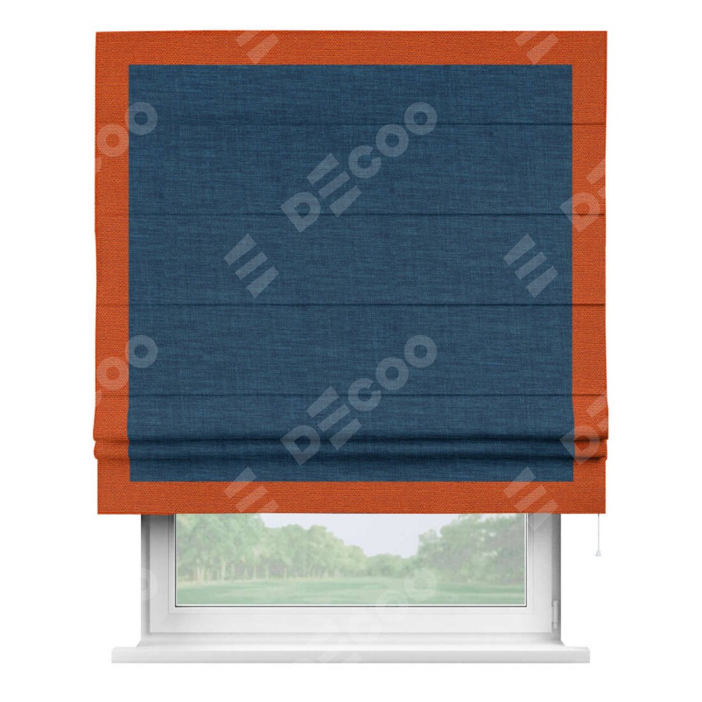 Римская штора «Кортин» для проёма, лён синий, с кантом Чесс