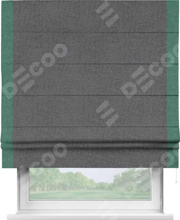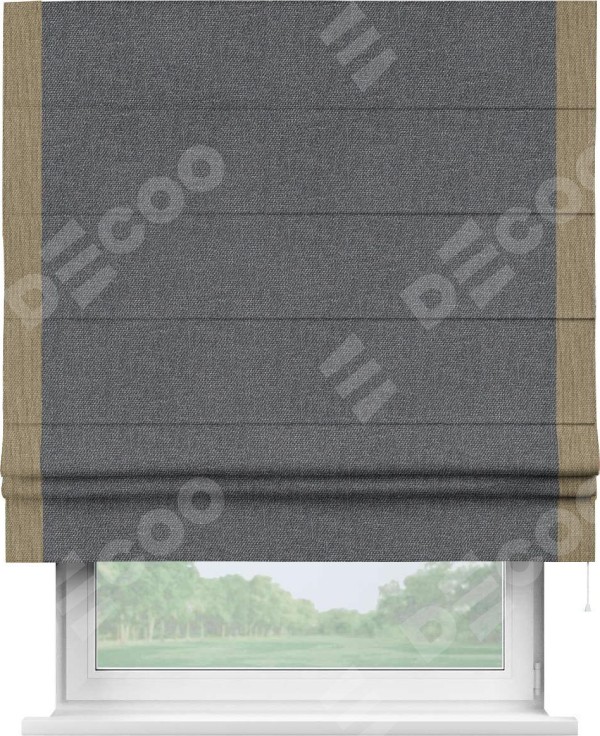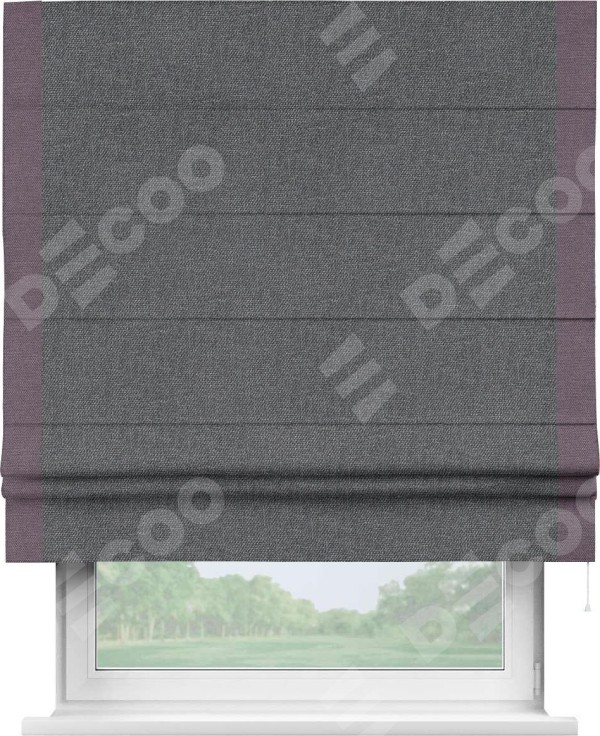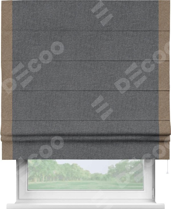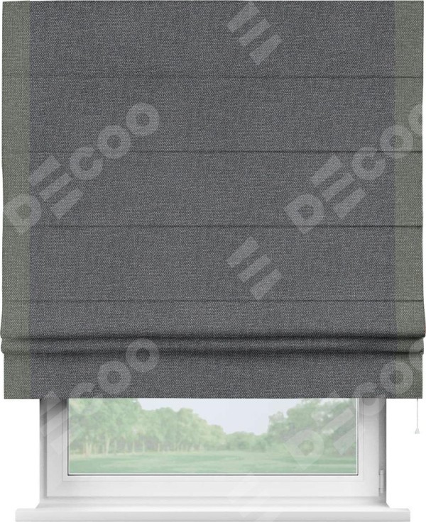 Римская штора «Кортин» для проёма, лён димаут графит с кантом Стрим Дуо