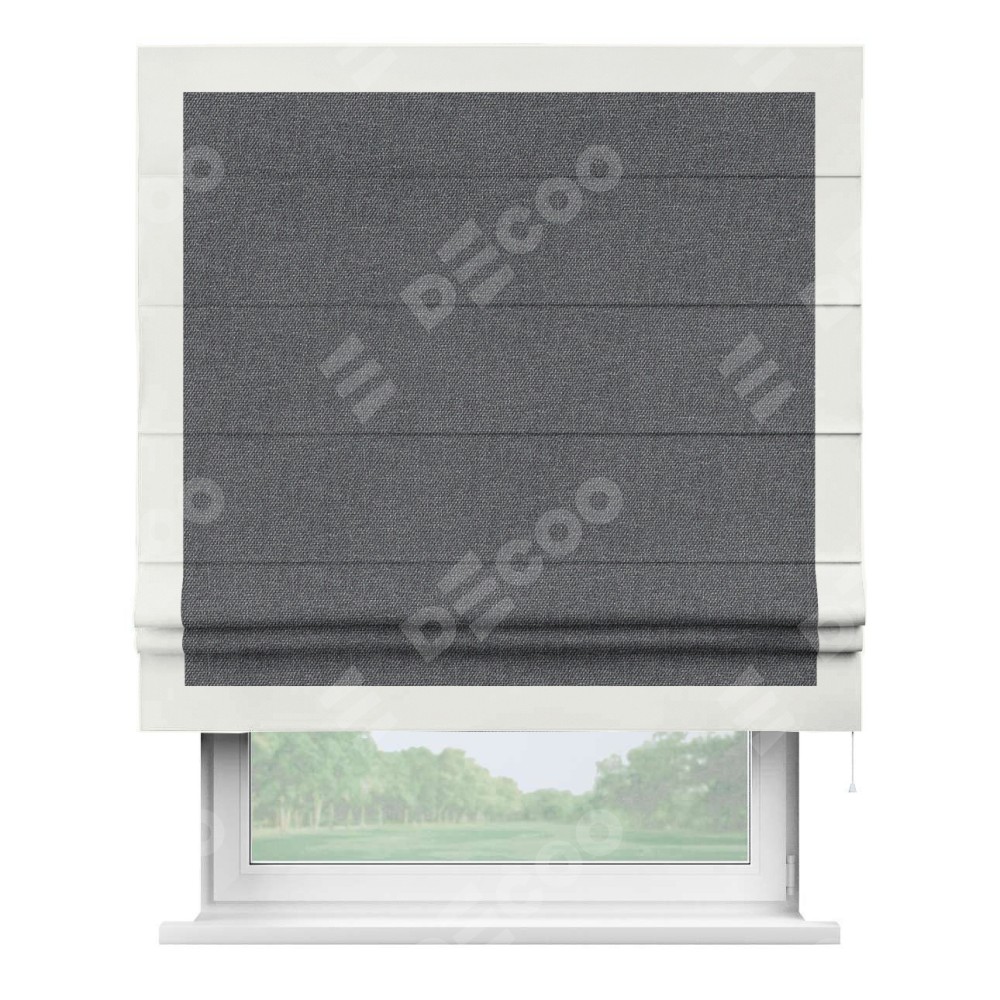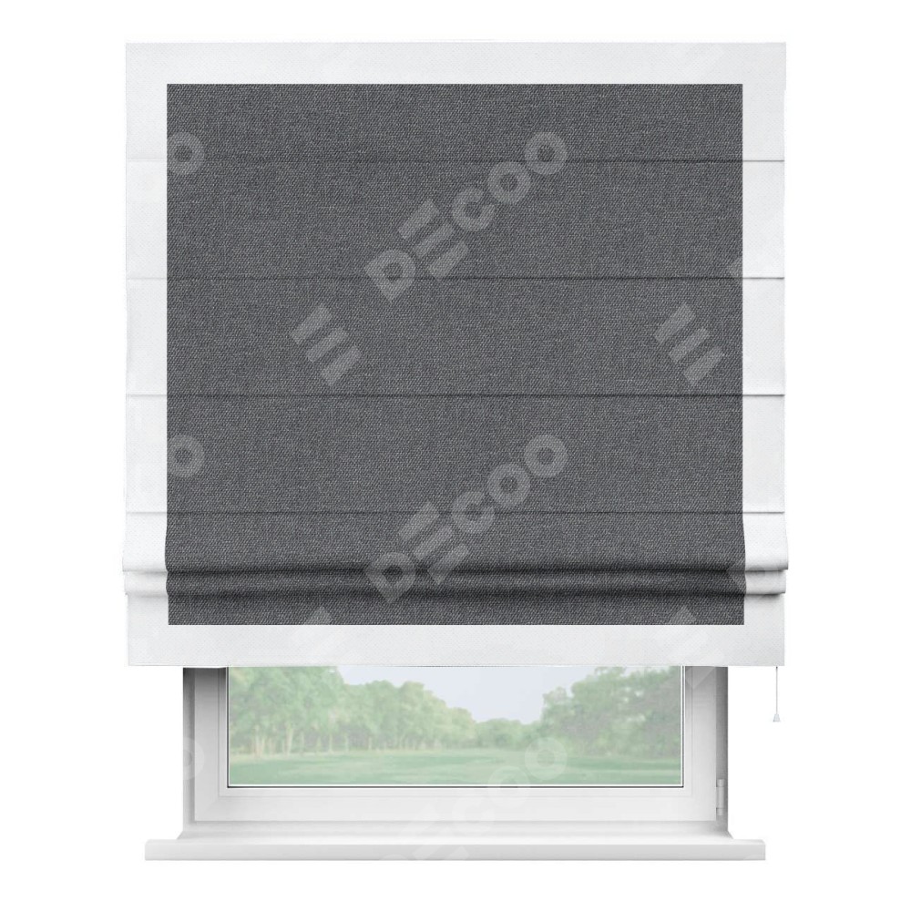 Римская штора «Кортин» для проёма, лён димаут графит с кантом Чесс