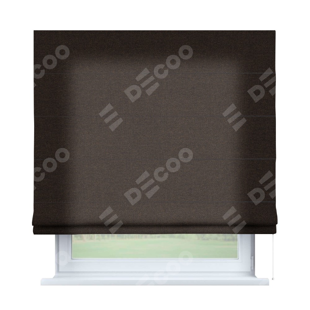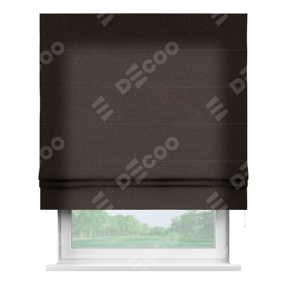 Классическая римская штора производителя «Cortin», пошита из ткани лён тёмно-коричневый, артикул: 104497. Имеет универсальный механизм и подходит для монтажа: на потолок, на стену и в нишу.