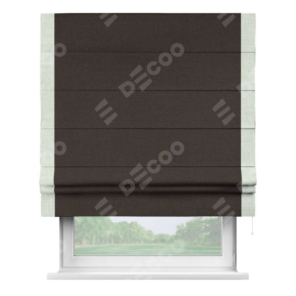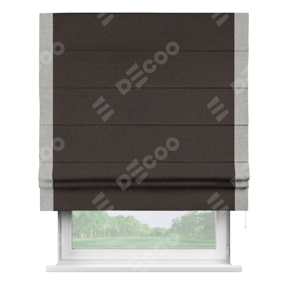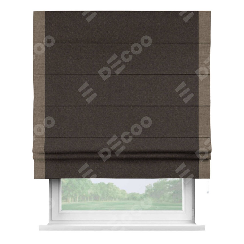 Римская штора «Кортин» для проёма, лён тёмно-коричневый, с кантом Стрим Дуо