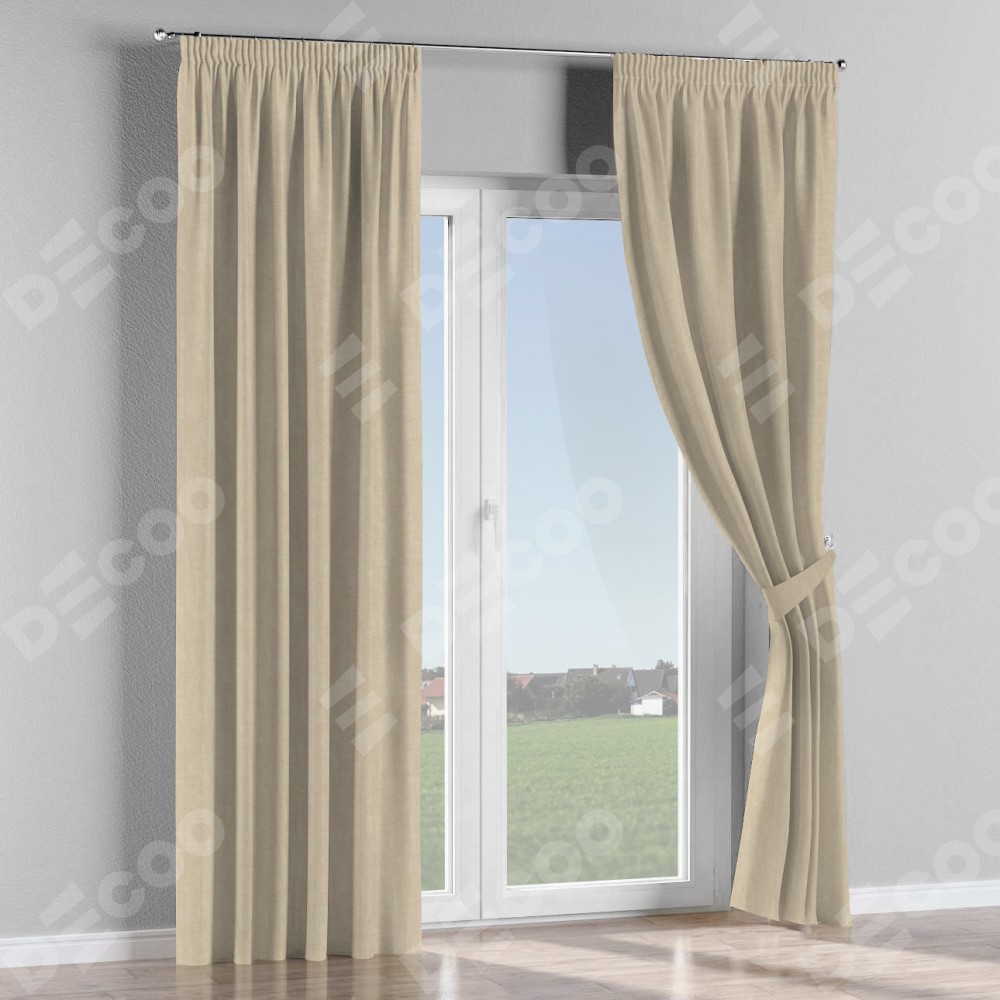 С изнаночной стороны в верхней части штор пристрачивается шторная лента с декоративными складками «Карандаш». Для создания элегантных складок рекомендуемый коэффициент 1:2 (на 100 см. ширины проёма 200 см. ширины ткани). Важно! Ширина штор указана без учёта коэффициента сборки!