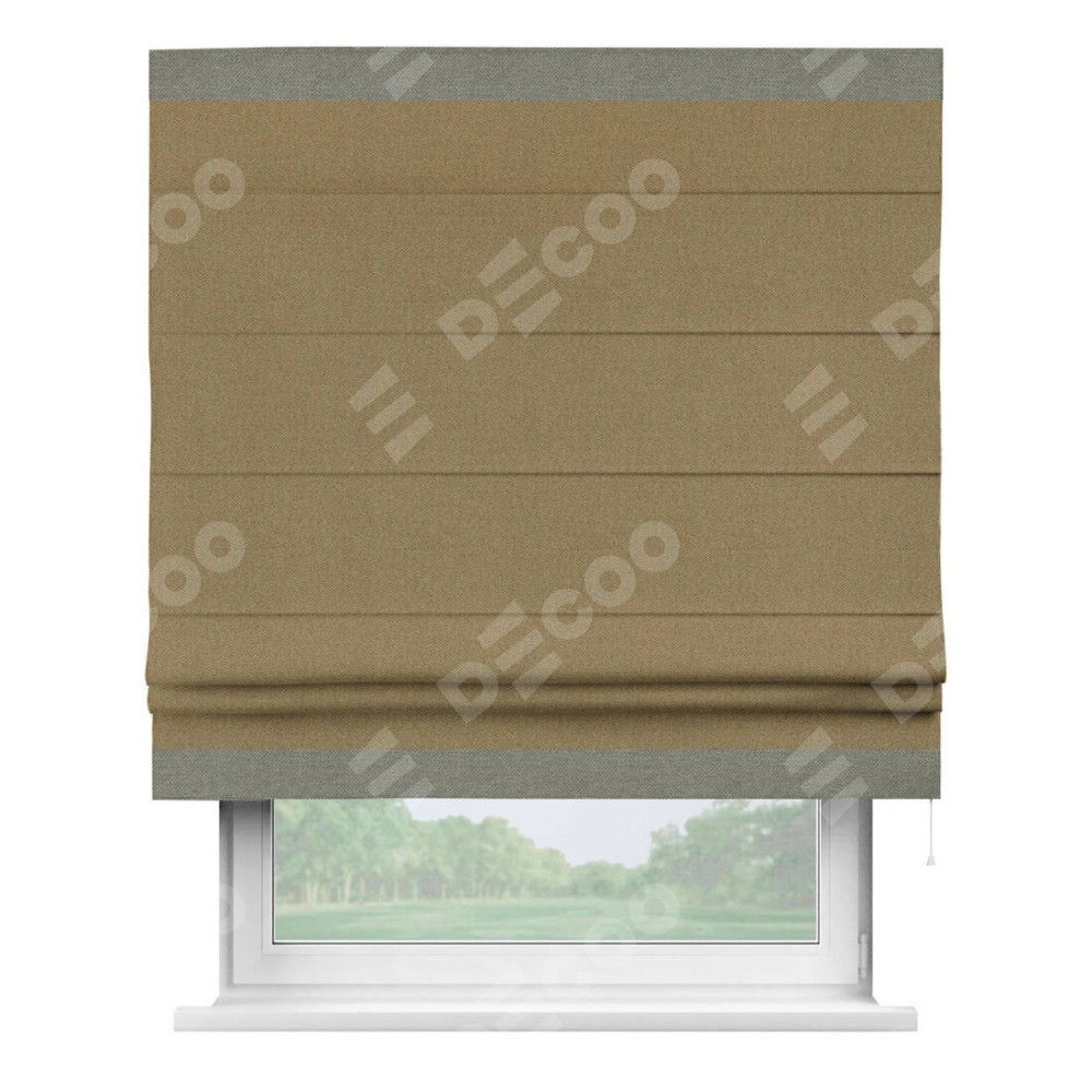 Римская штора «Кортин» с кантом Горизонт, для проема, ткань лён димаут, оливковый