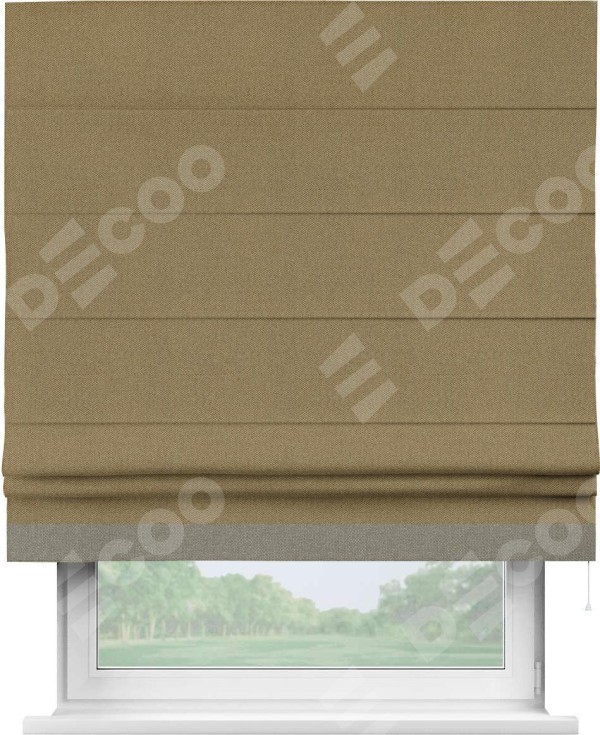 Римская штора «Кортин» с кантом Джестер, для проема, ткань лён димаут, оливковый