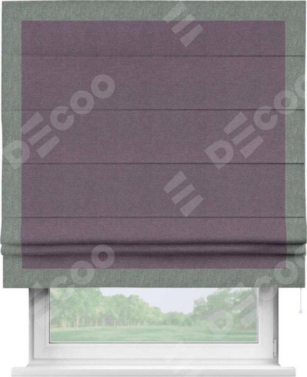 Римская штора «Кортин» с кантом Чесс, для проема, ткань лён димаут, светло-фиолетовый