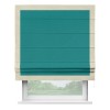 Римская штора производителя «Cortin», используется для проёма, пошита из ткани лён димаут тёмно-бирюзовый, артикул 318. Отделка шторы кантом «Чесс», ткань для канта используется из льна димаут разной расцветки на выбор. Имеет универсальный механизм и подходит для монтажа: на потолок, на стену и в нишу.