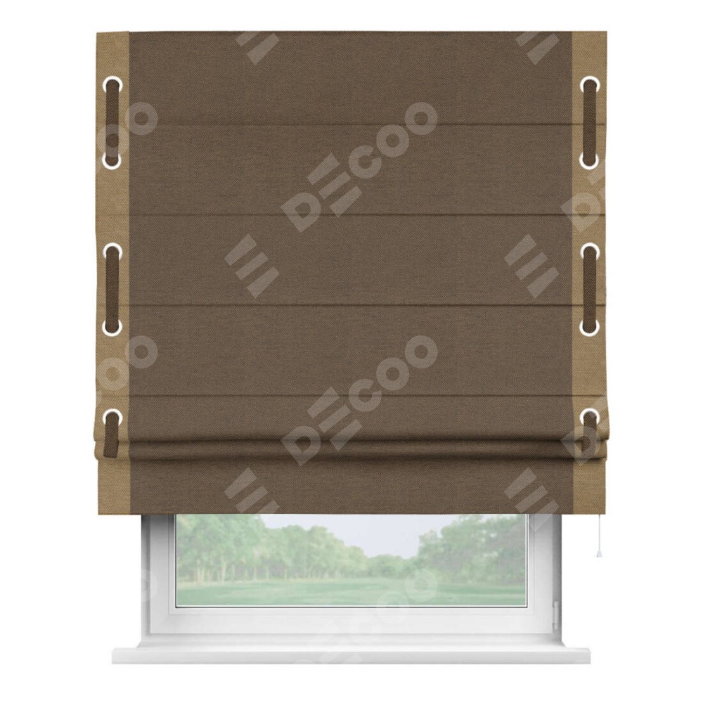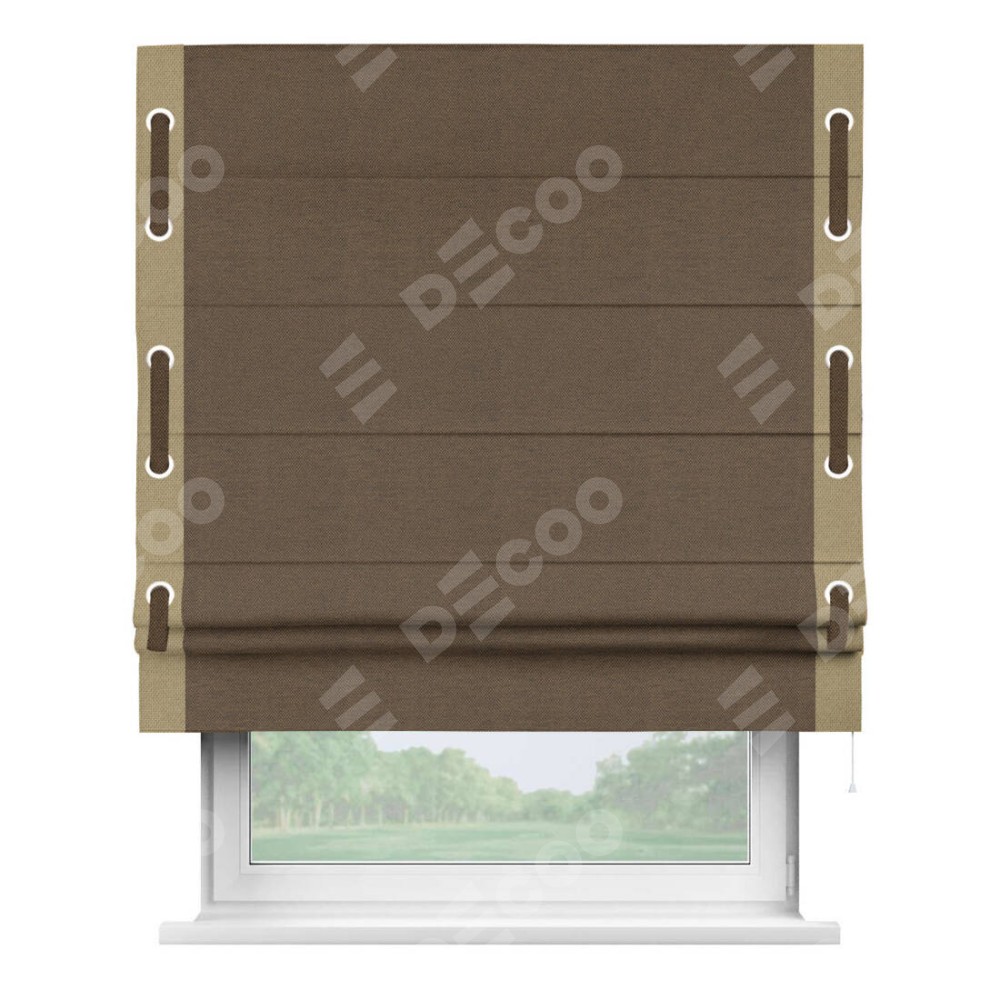 Римская штора «Кортин» с кантом Стрим Дуо (люверсы с пояском), для проема, ткань лён димаут, тёмно-коричневый