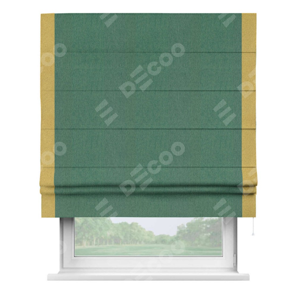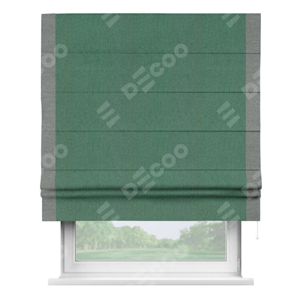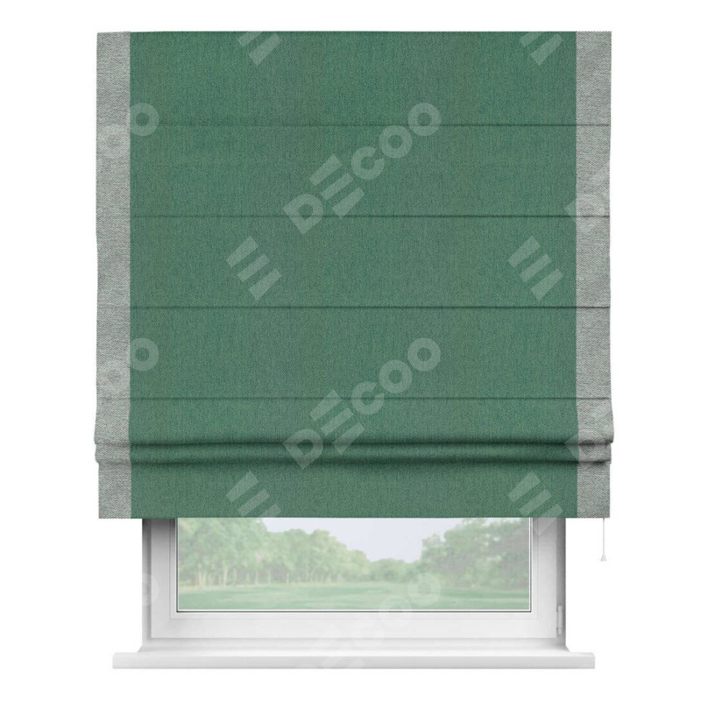Римская штора «Кортин» с кантом Стрим Дуо, для проема, ткань твид блэкаут, зелёный
