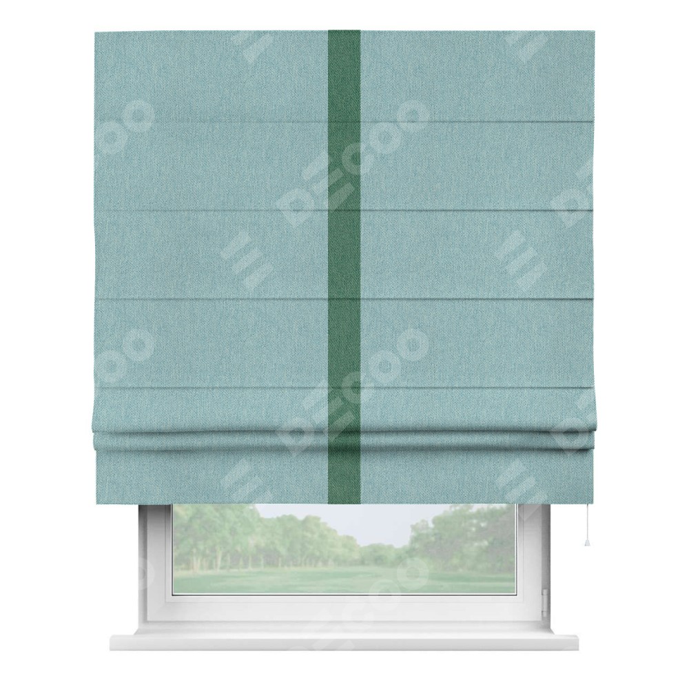 Римская штора «Кортин» с кантом Хайвэй, для проема, ткань твид блэкаут, небесно-голубой