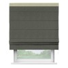 Римская штора производителя «Cortin», используется для проёма, пошита из ткани твид блэкаут тёмно-серый, артикул 21587. Отделка шторы кантом «Кинг», ткань для канта используется из твида разной расцветки на выбор. Имеет универсальный механизм и подходит для монтажа: на потолок, на стену и в нишу.