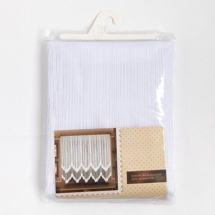 Тюль кухонная со шторной лентой 285×160 см, белый, 100% п/э сделает внешний вид обеденной зоны полным и законченным. Сдержанный стиль в оформлении окна не отвлечёт внимания от общего интерьера помещения.