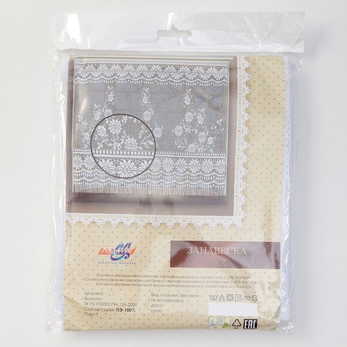 Штора 170×140 см, белый, 100% п/э, без шторной ленты