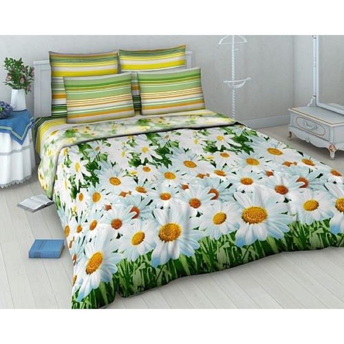 Постельное бельё евро «Василиса» Ромашковый вальс 200×215 см, 200×220 см, 70×70 см — 2 шт.