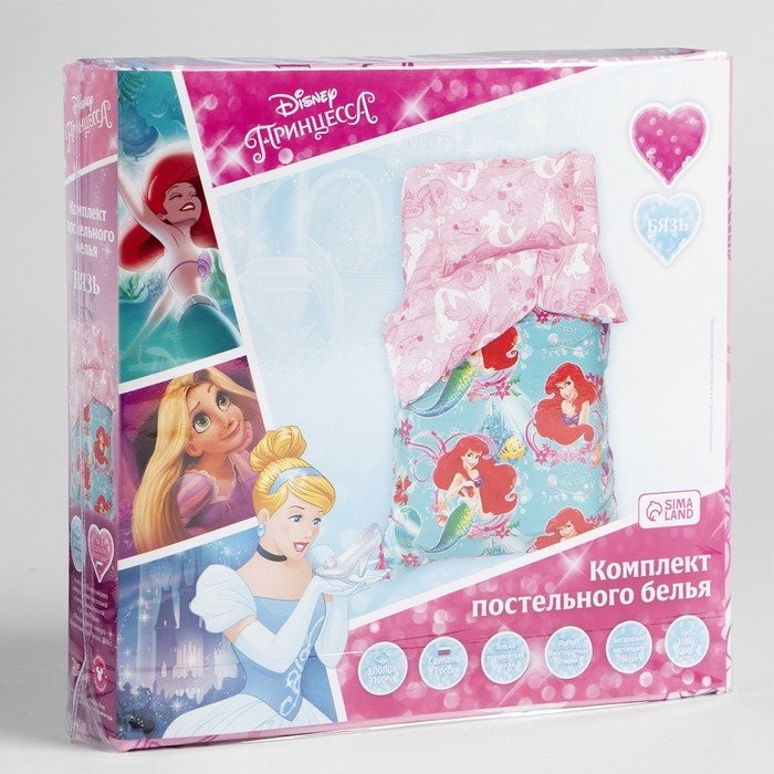 Постельное бельё 1,5 сп «Принцессы: Русалочка Ариэль», размер 143×215 см, 150×214 см, 50×70 см-1 шт., 100% хлопок, бязь