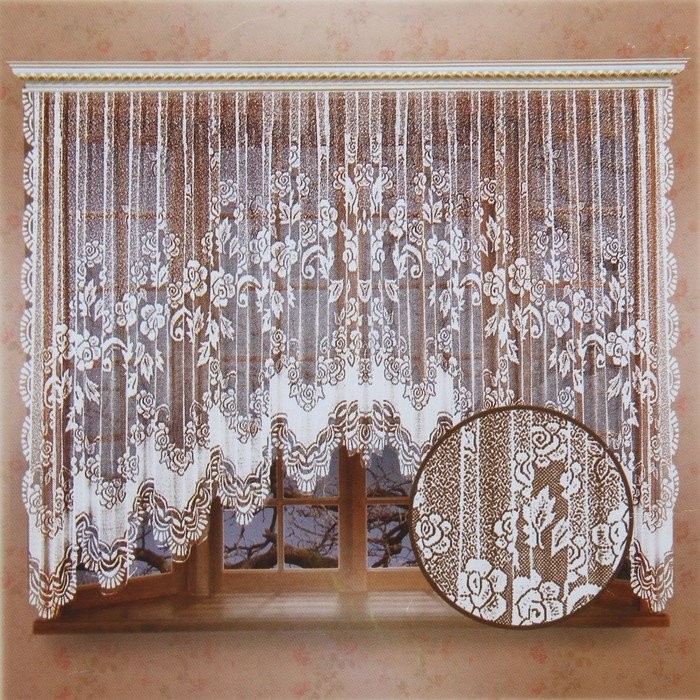 Тюль кухонная со шторной лентой, 470×165 см, белый, 100% п/э украсит помещение и обновит внешний вид кухни. Изящное цветочное оформление и невесомая фактура подчеркнут общий интерьер.