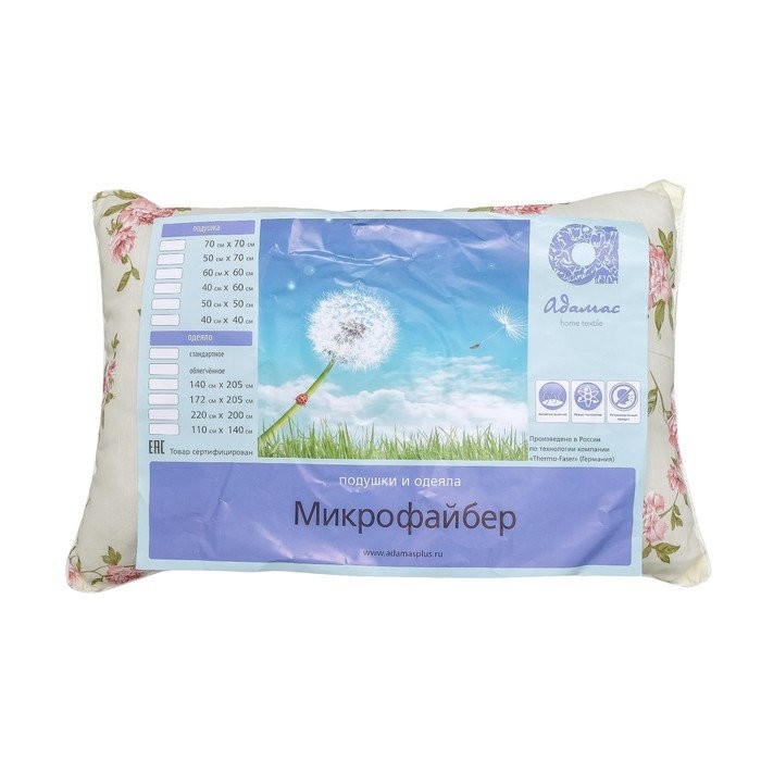 Подушка Адамас синтетическая, размер 40×60 см, холлофайбер, чехол МИКС