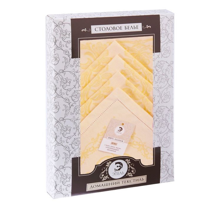 Столовый набор «Этель» (скатерть 150×300 см, салфетки 45×45 см — 12 шт.) цвет шампань, хл. с ВМГО
