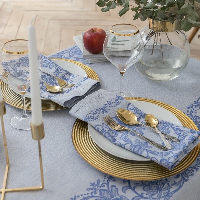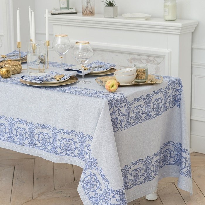 Столовый набор «Этель» (скатерть 150×300 см, салфетки 45×45 см — 12 шт.) цвет синий, хл. с ВМГО